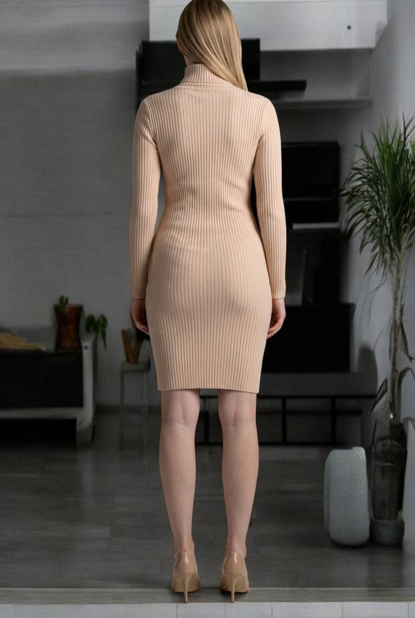 Ladies Beige Polo Neck Jersey Dress