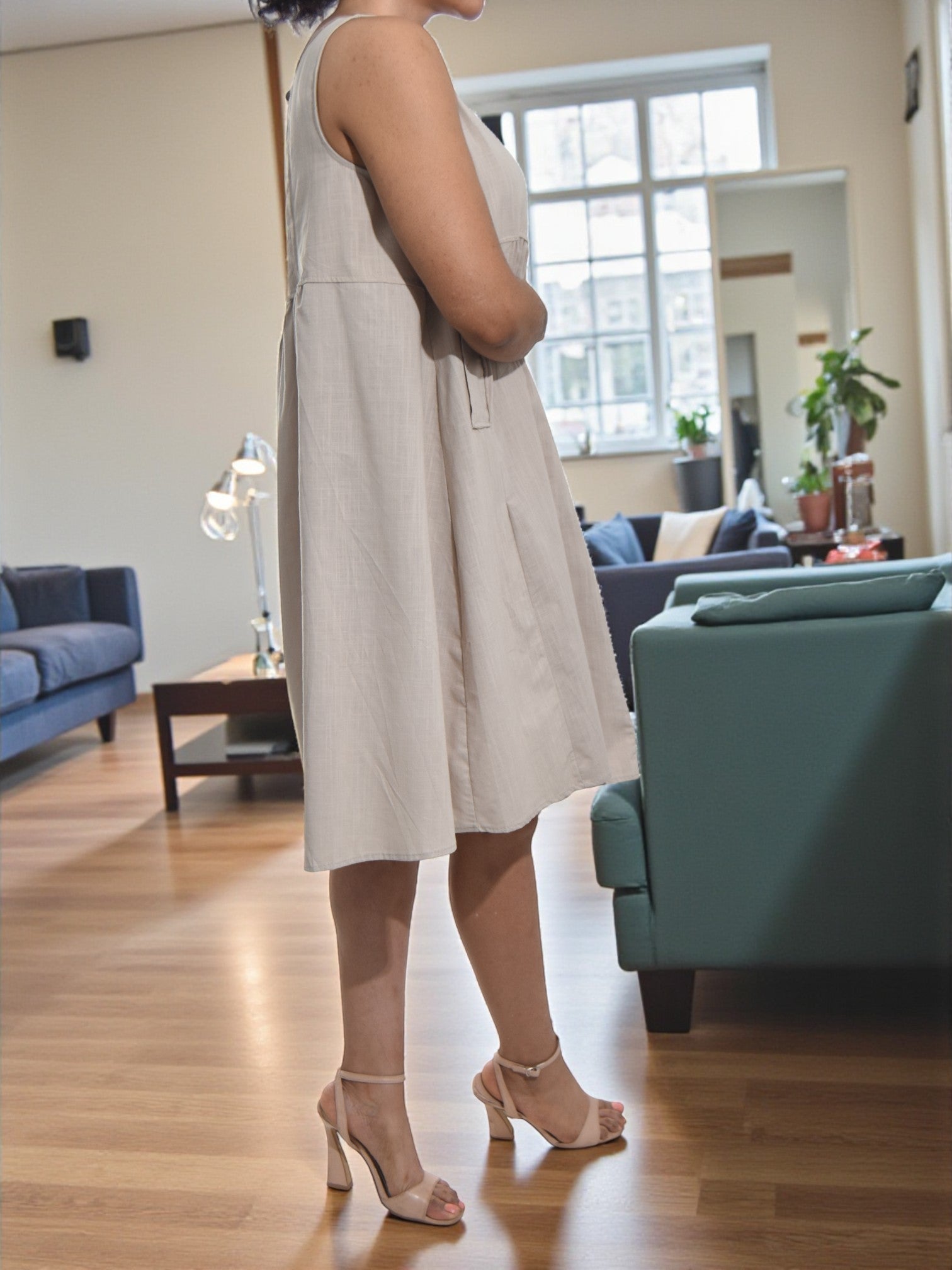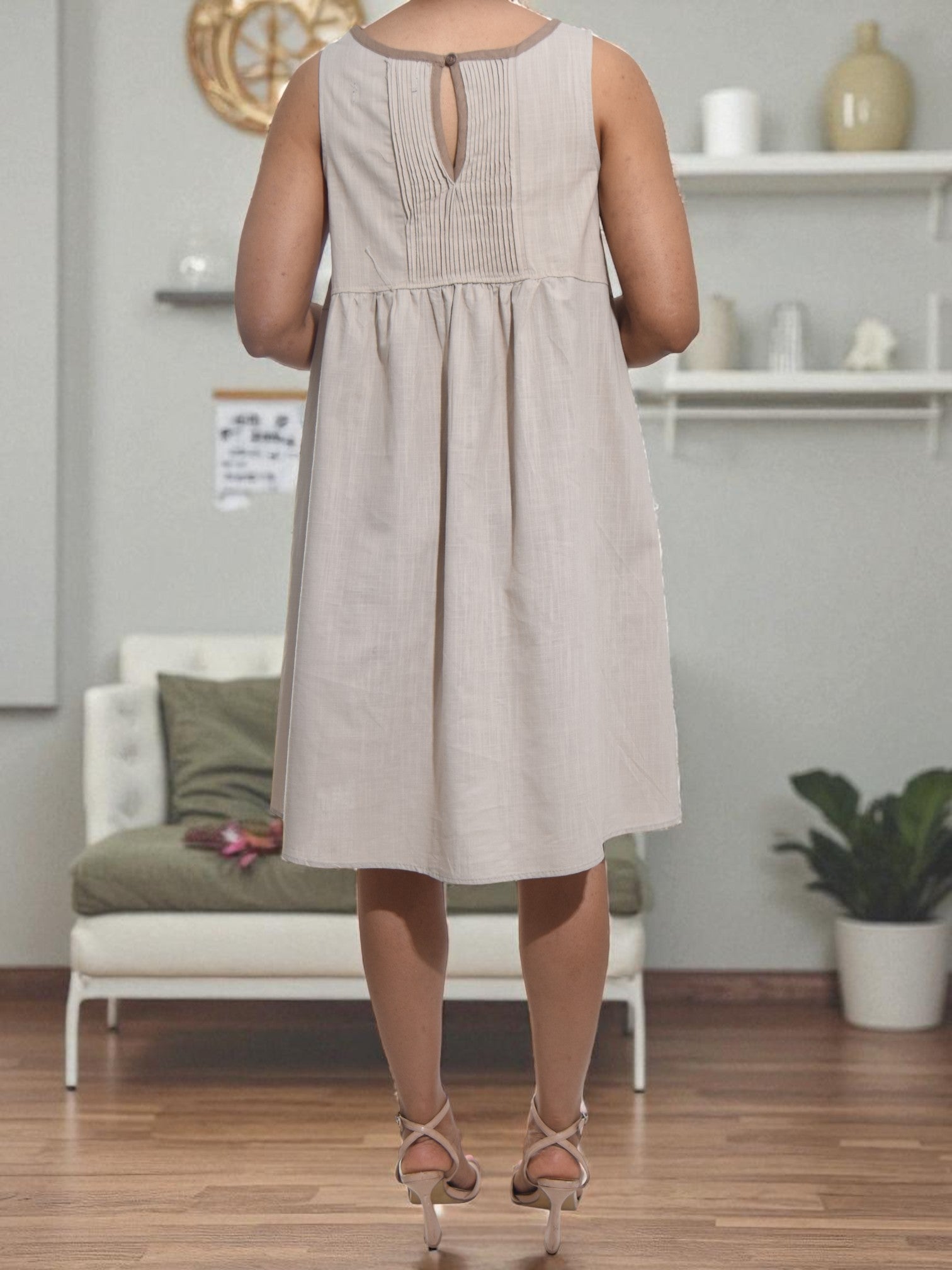 Ladies Beige Tunic Pocket Dress