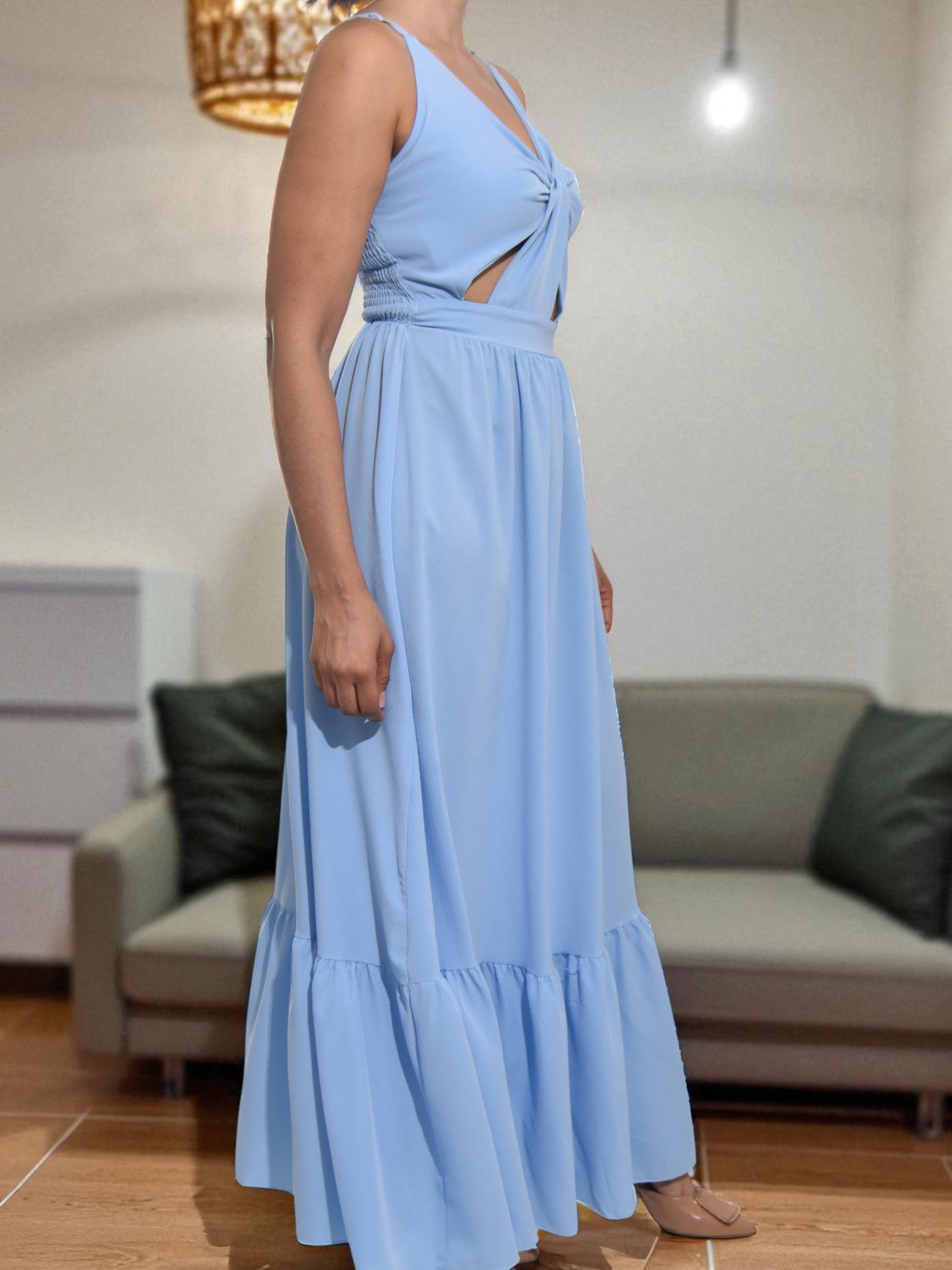 Style-B9-3069# | Front Tie, Tier Dress, Ruched Back |