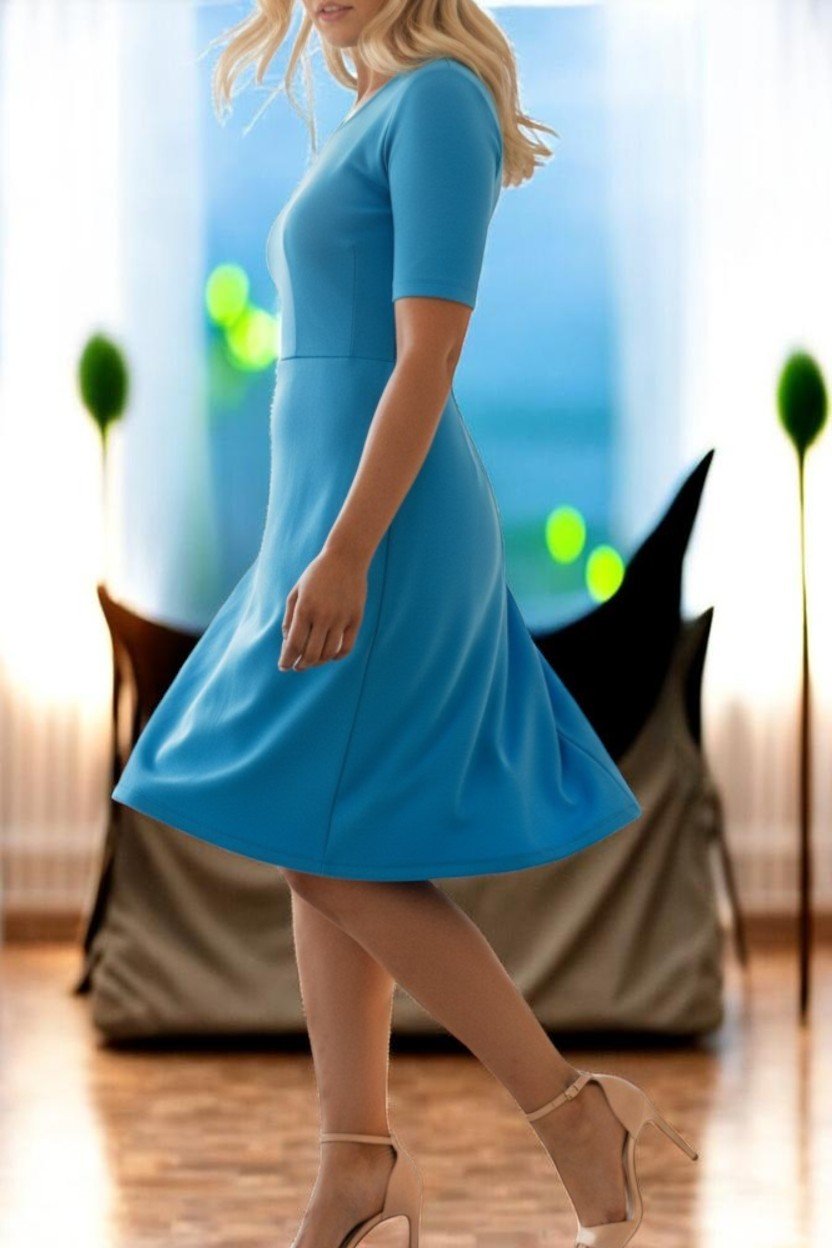 Ladies Blue Cap Sleeve Dress