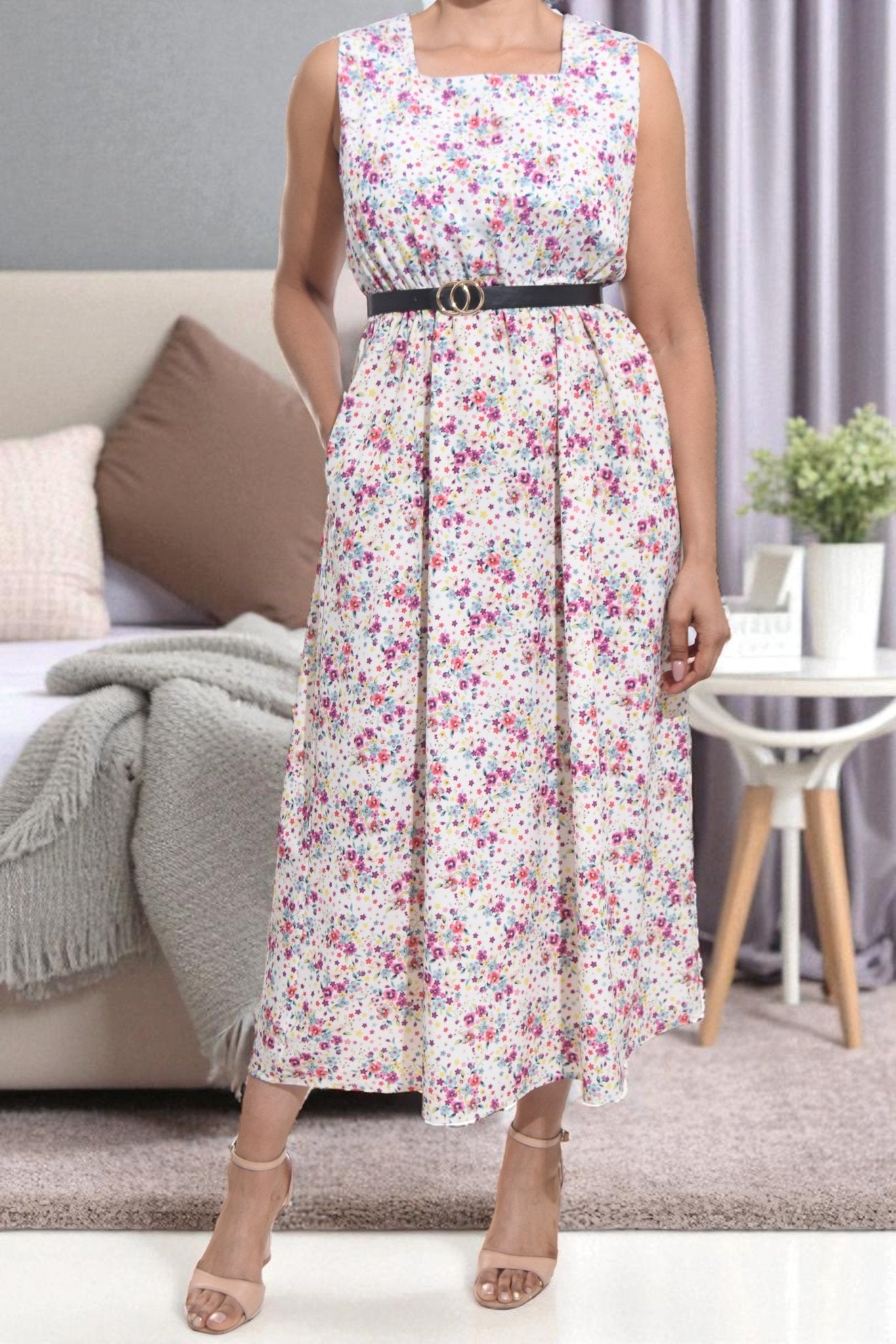 Ladies Cerise Mini Floral Pocket Flare Dress (Excl Belt)