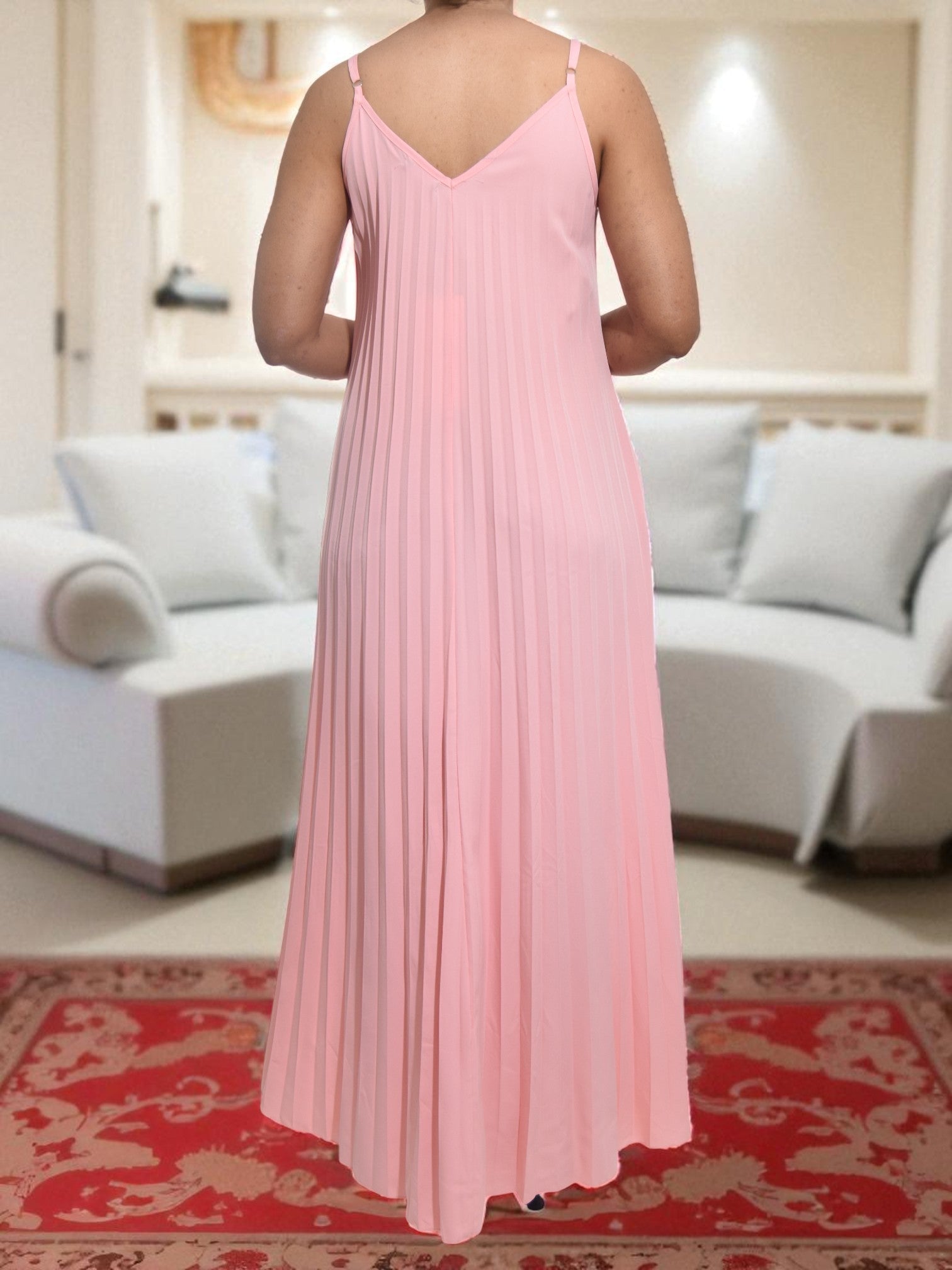 Ladies Pink Pleated Pocket Dress