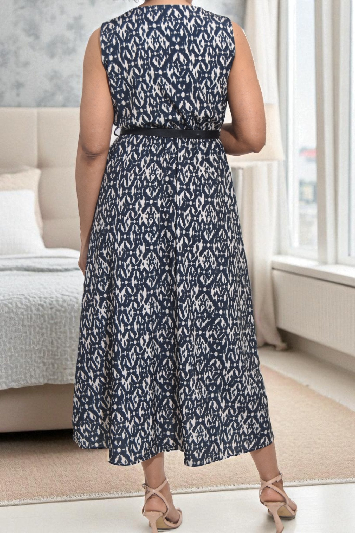 Ladies Pocket Flare Dress-Black Printed (Excl Belt)