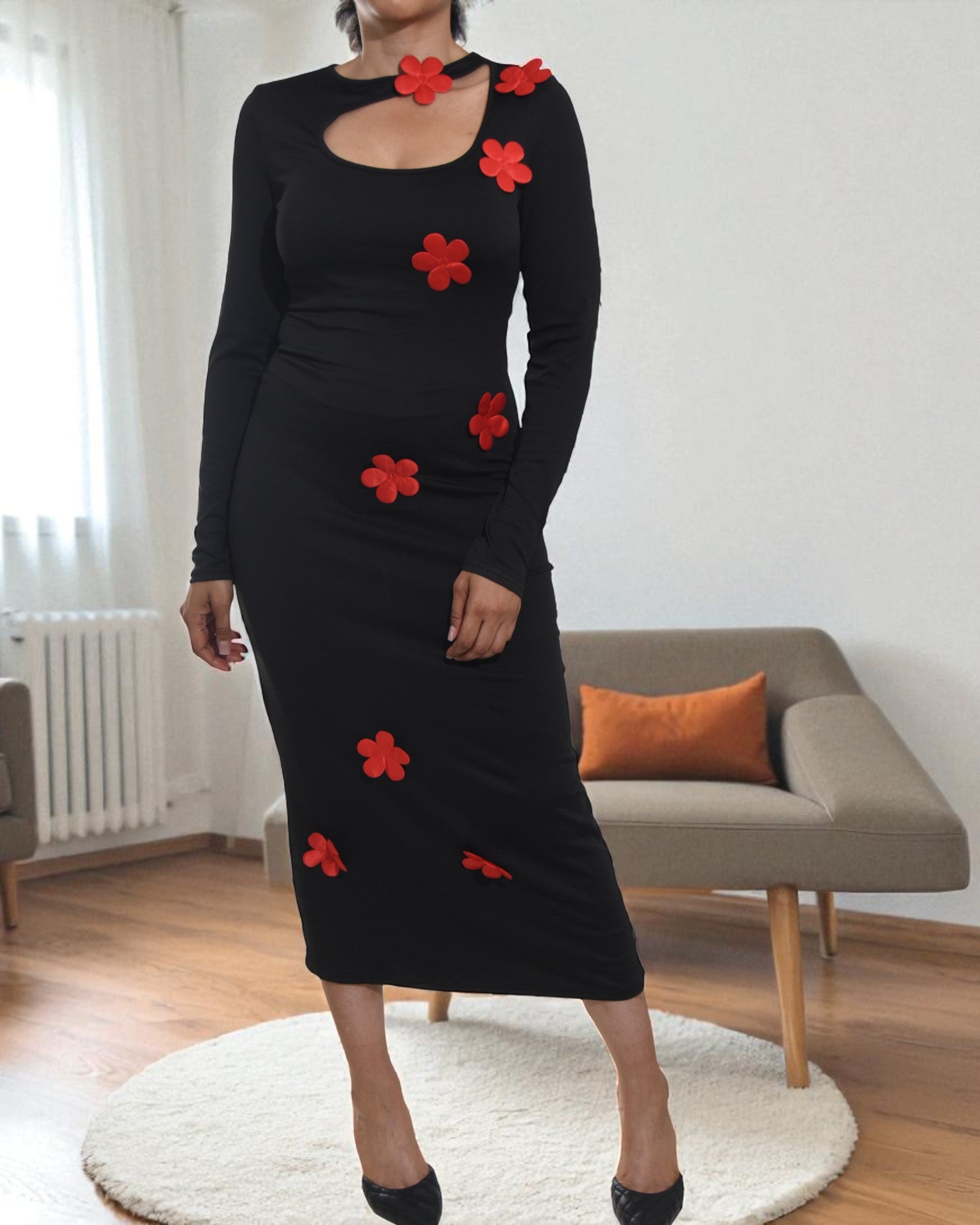 Ladies New Feeling Red Flower Open Chest Bodycon