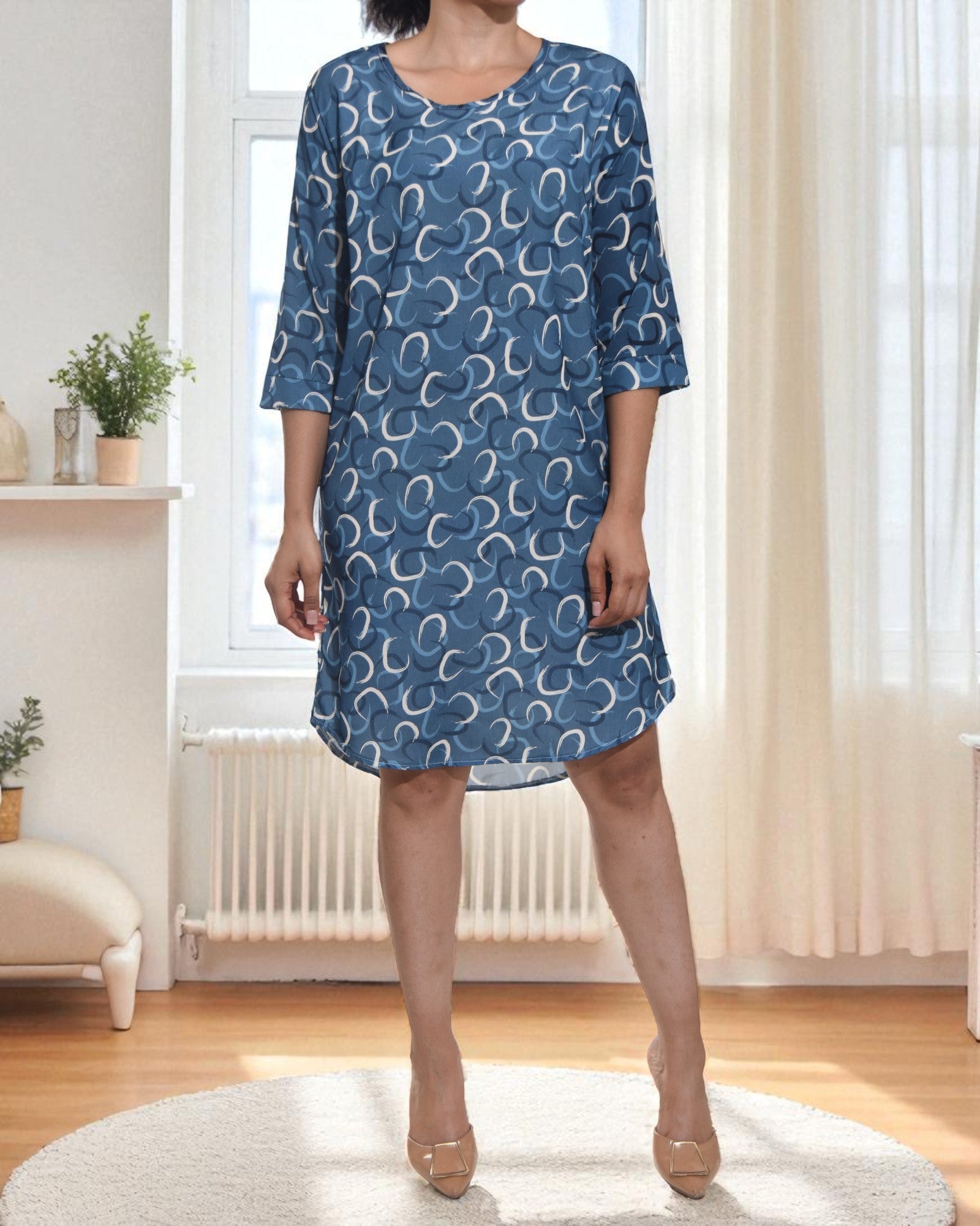 Ladies Teal Printed Tunic 3/4 Sleeve Dress