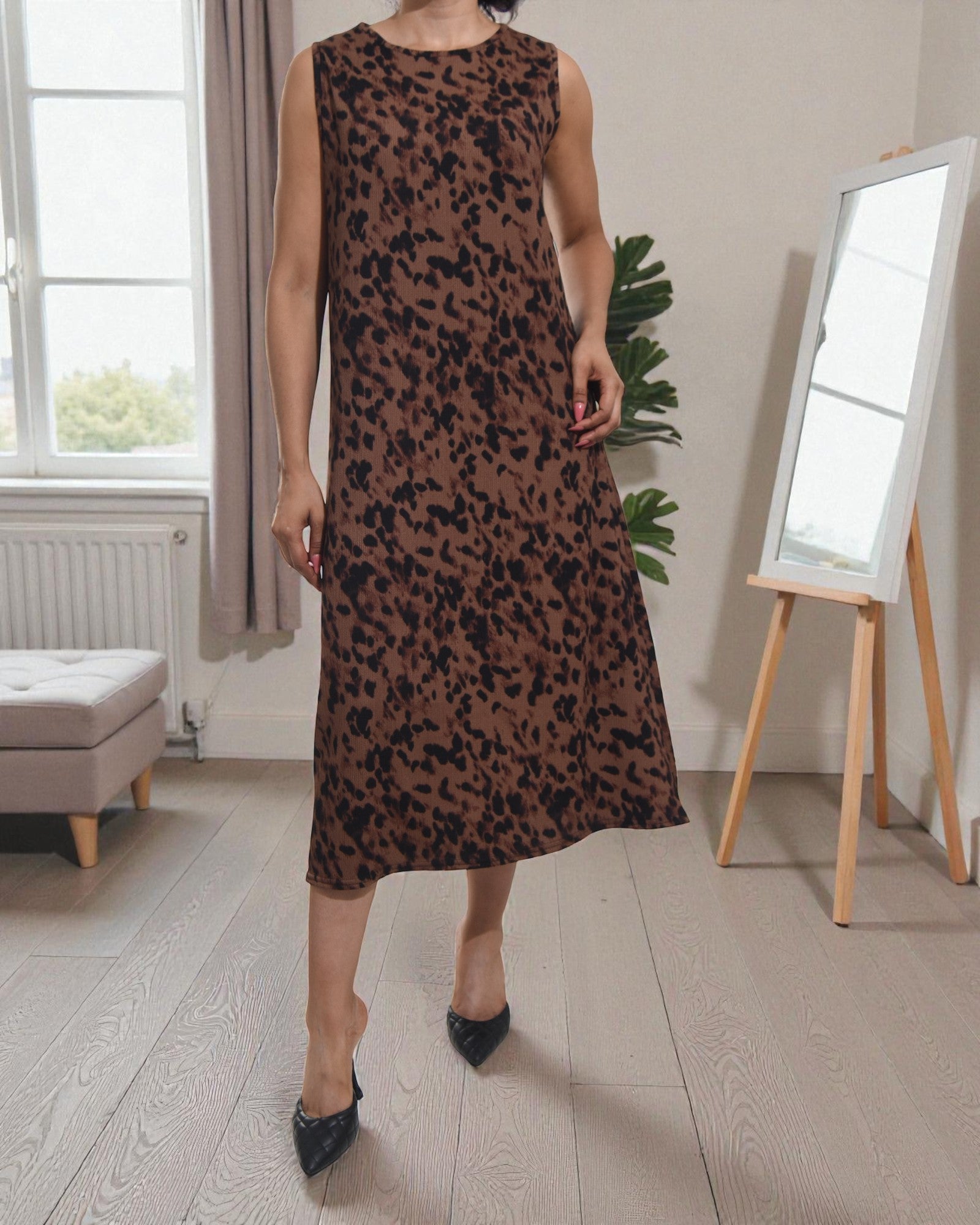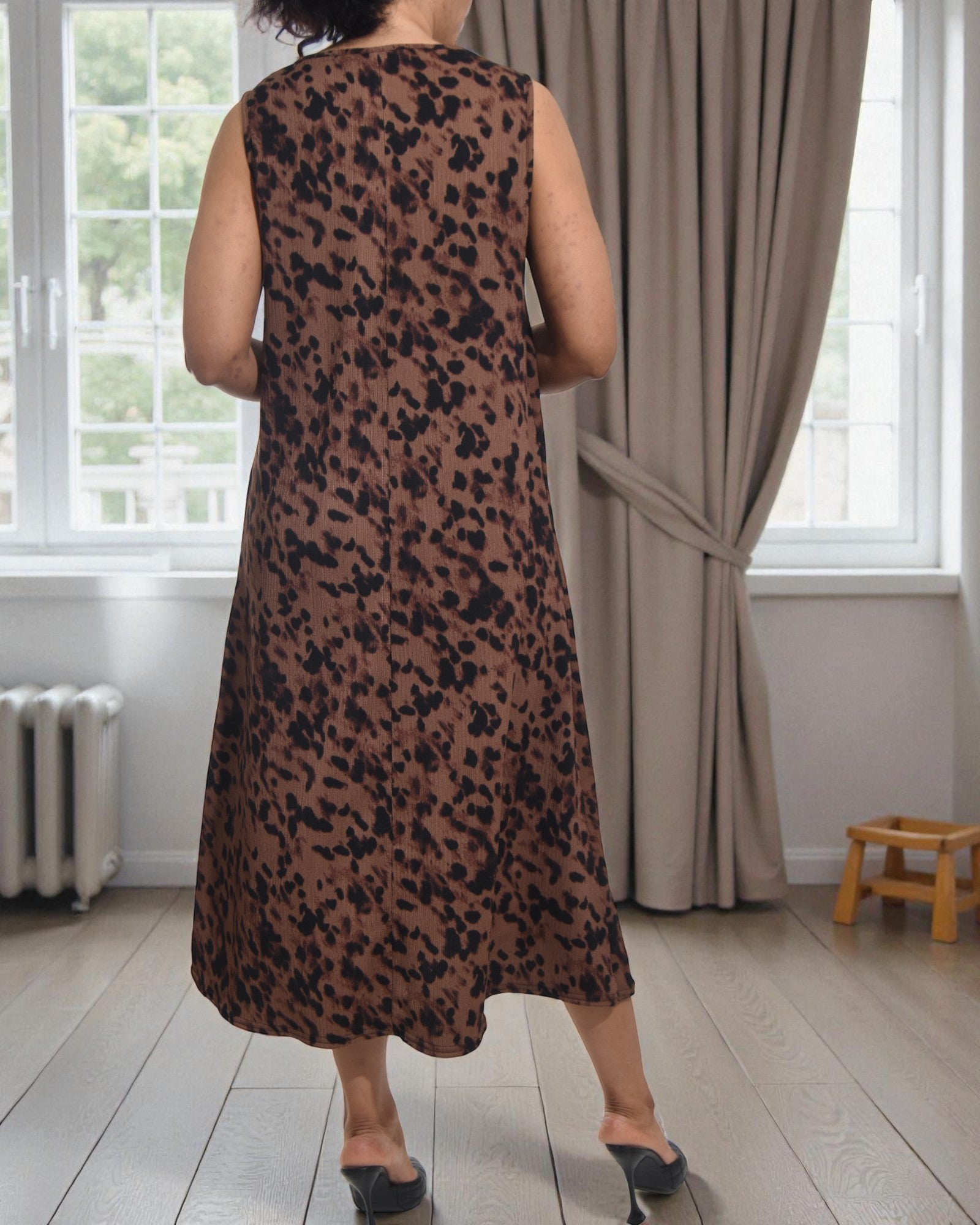 Ladies Choc Brown Crinkle Sleeveless Dress