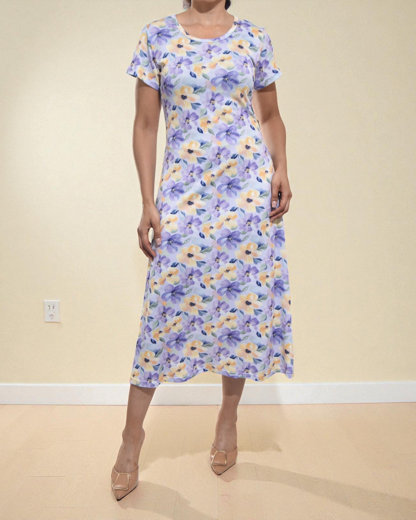 Ladies Lilac Midi Floral Dress