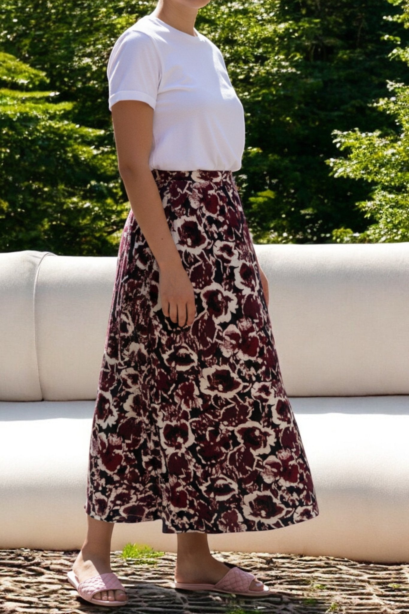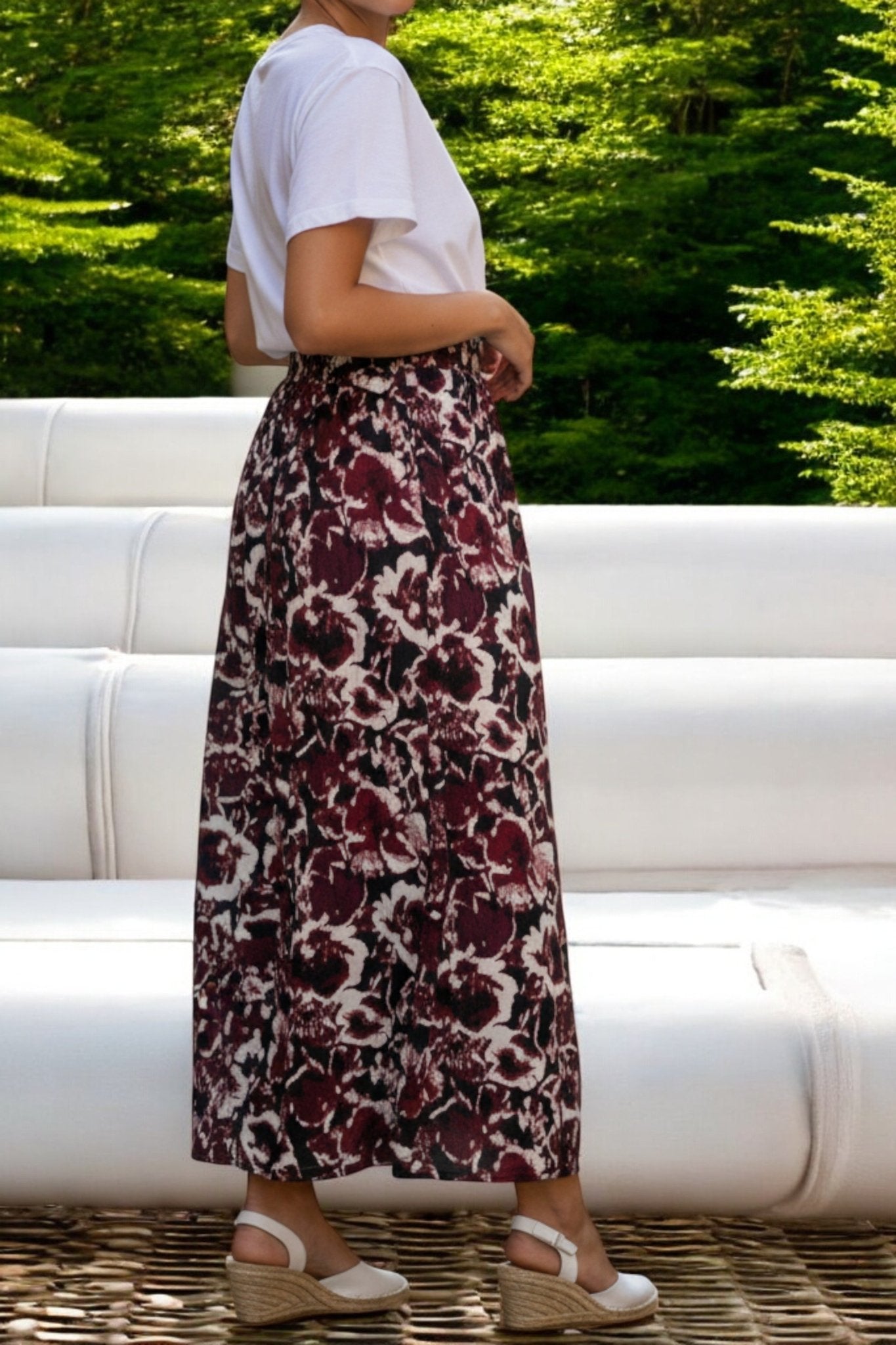 Ladies Elastic Skirt- Maroon Printed