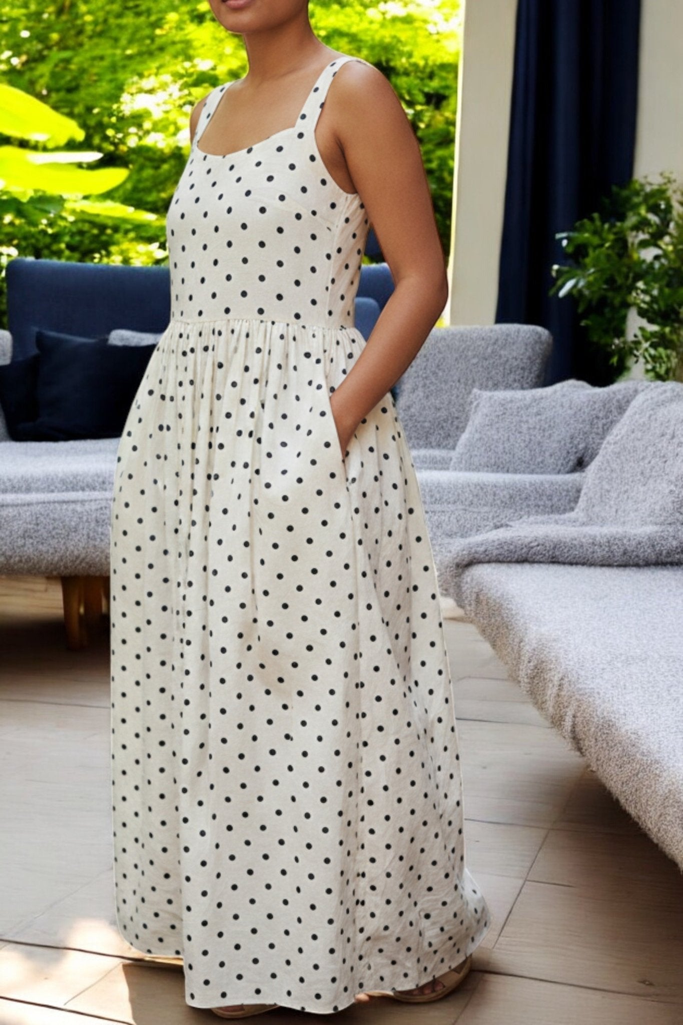 Ladies Maxi Pocket Dress-Polka Dot