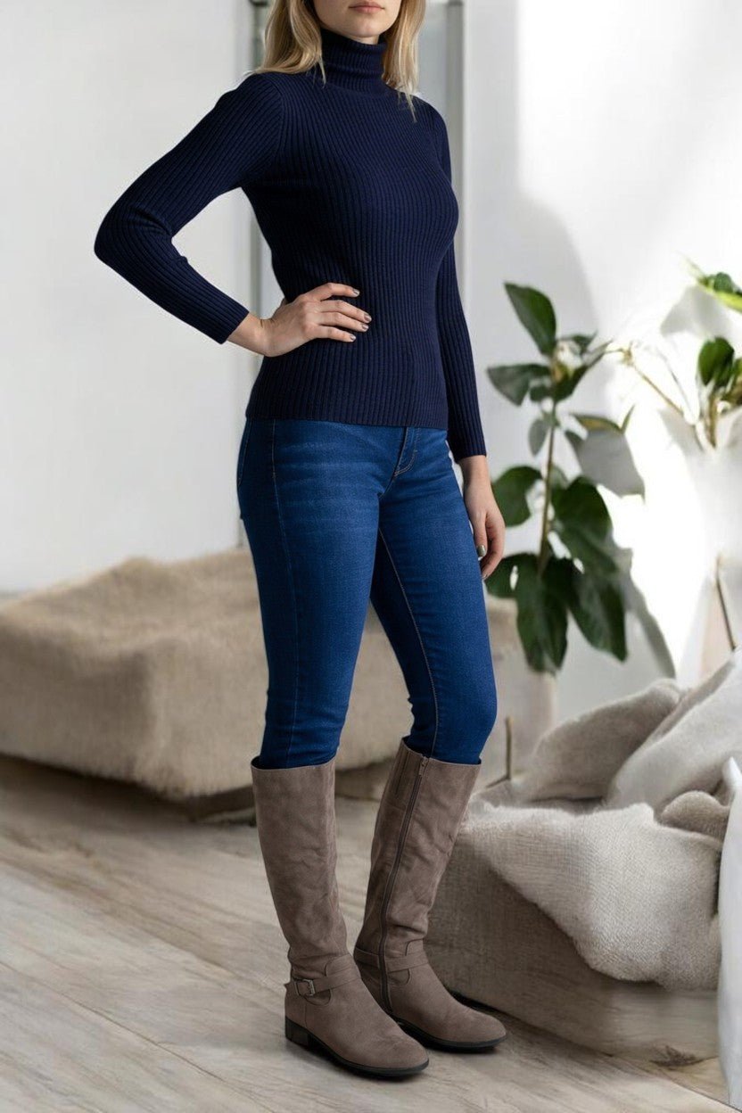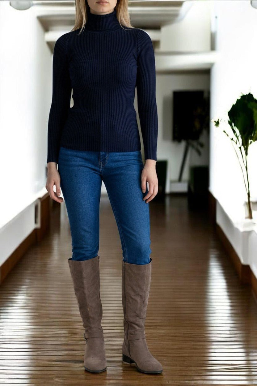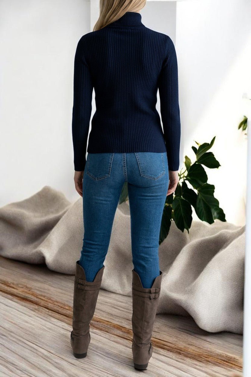 Ladies Navy Polo Neck Jersey Top