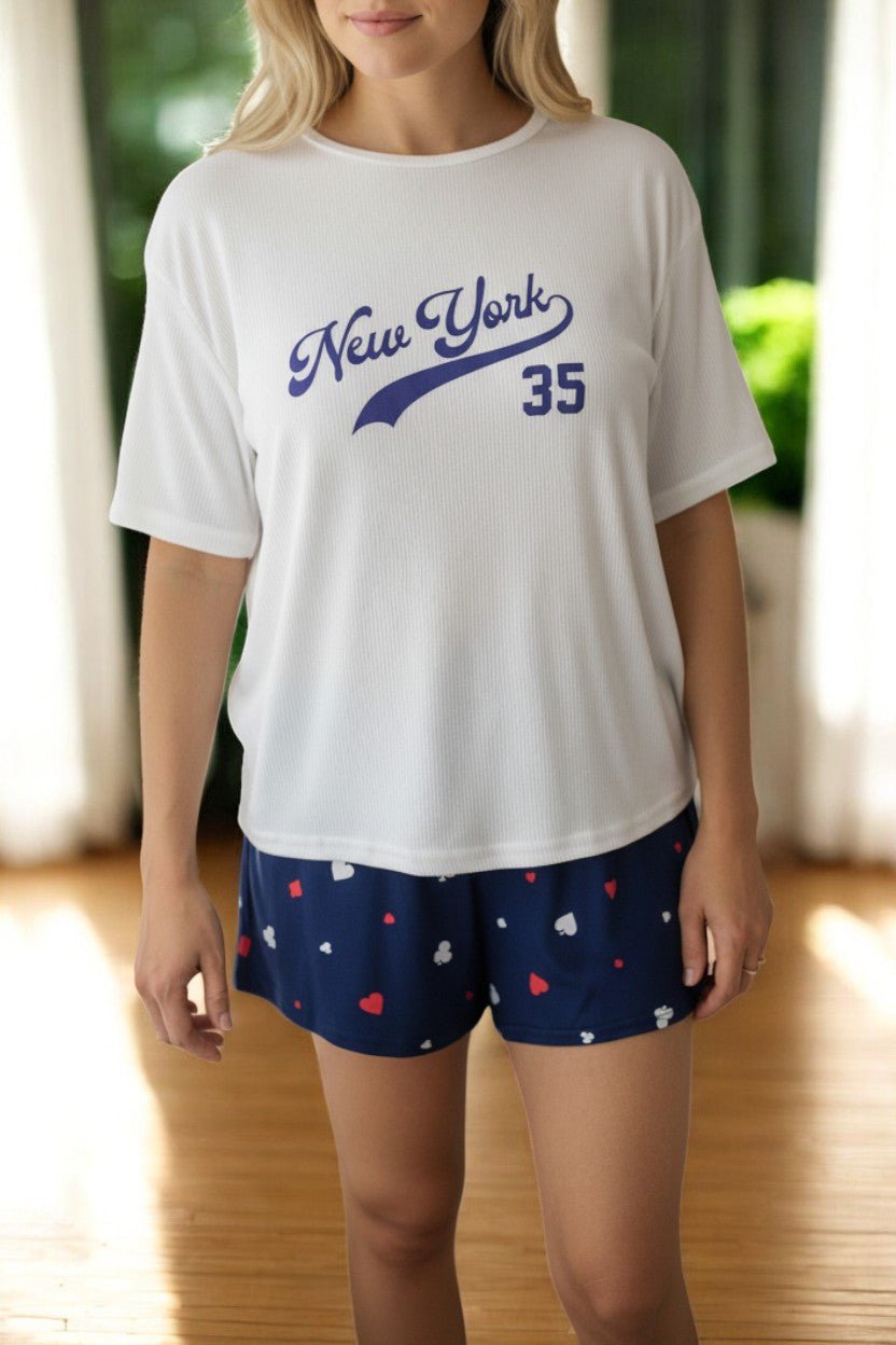 Ladies White Rib Knit Pj Set-New York 35