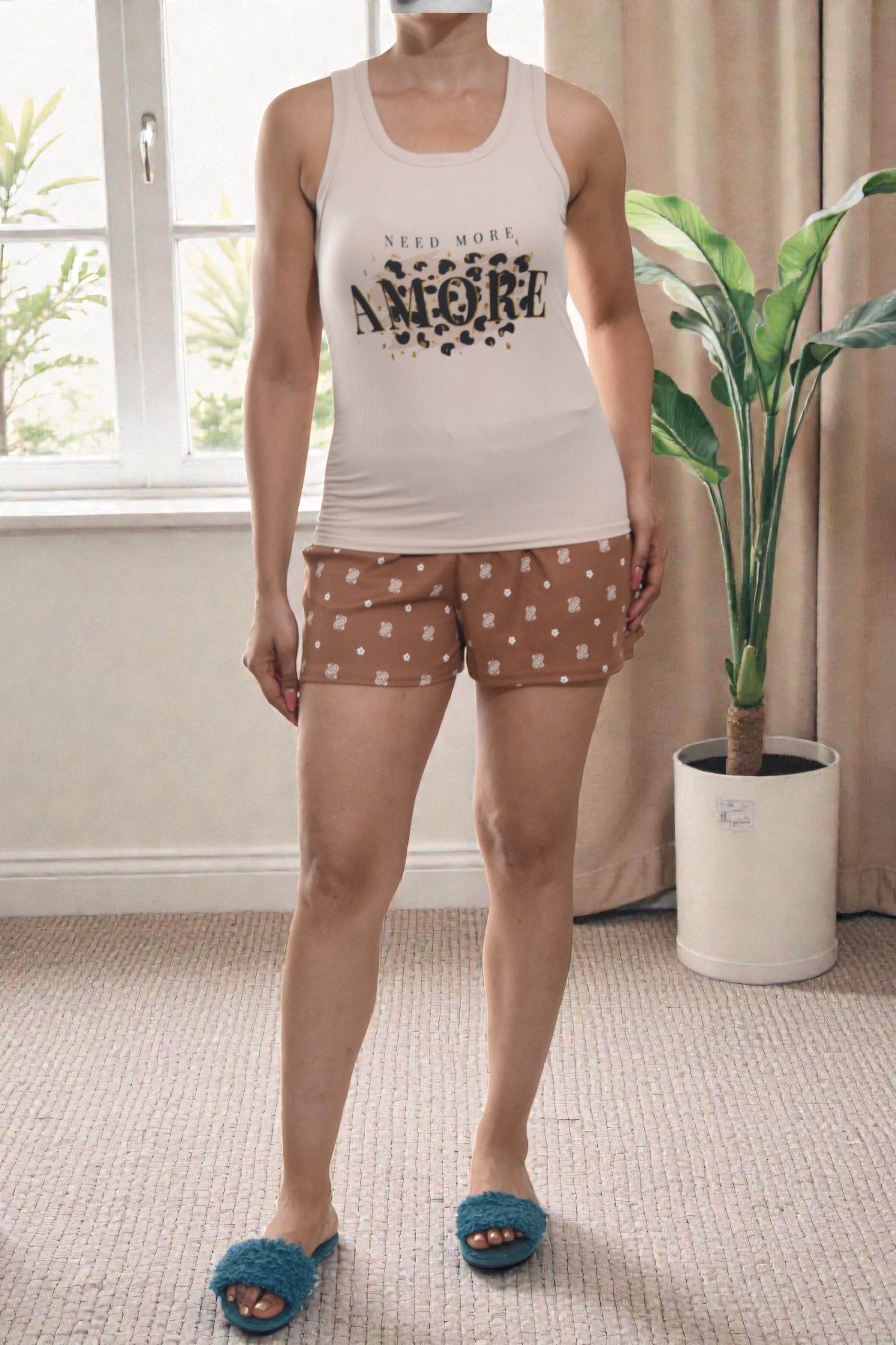 Ladies Rib Knit Vest Shorty Pj Set-Amour