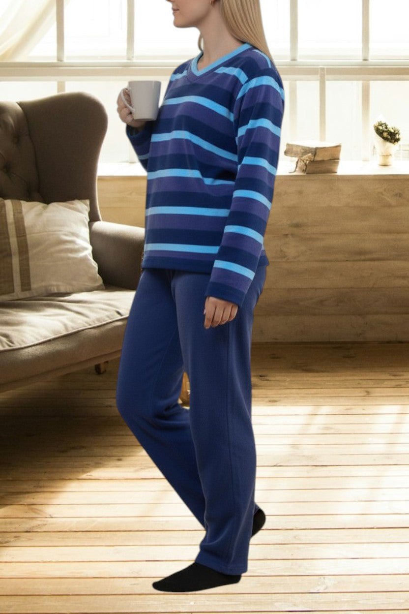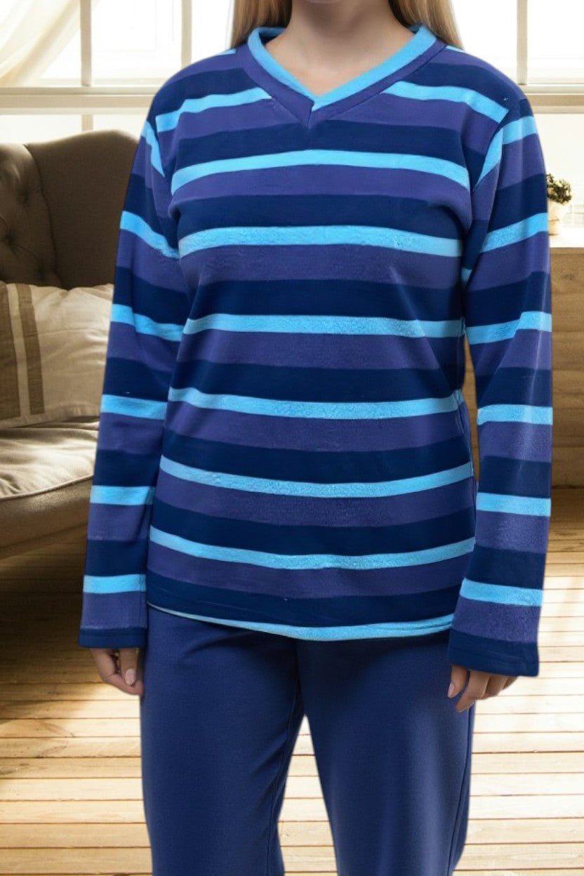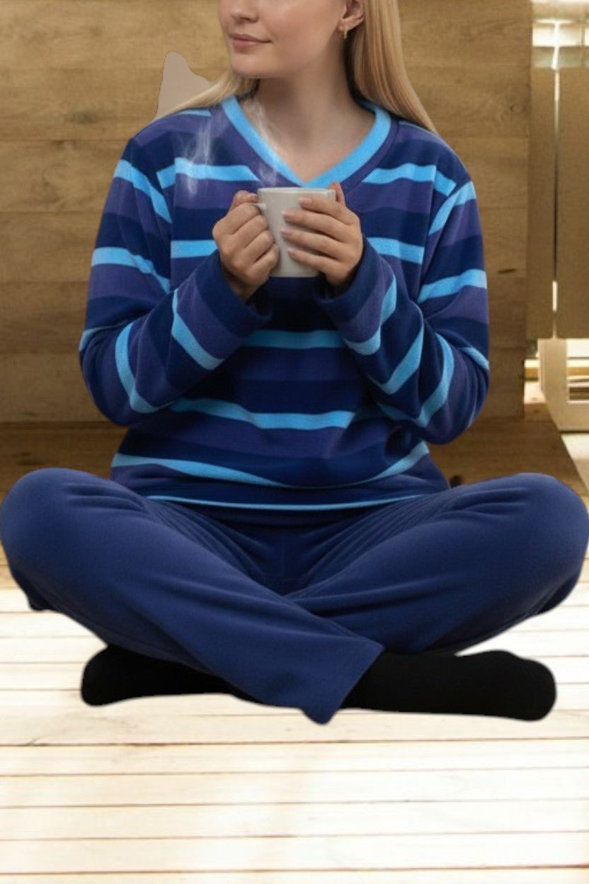 Ladies Polar Fleece Navy Stripe Pyjama Set