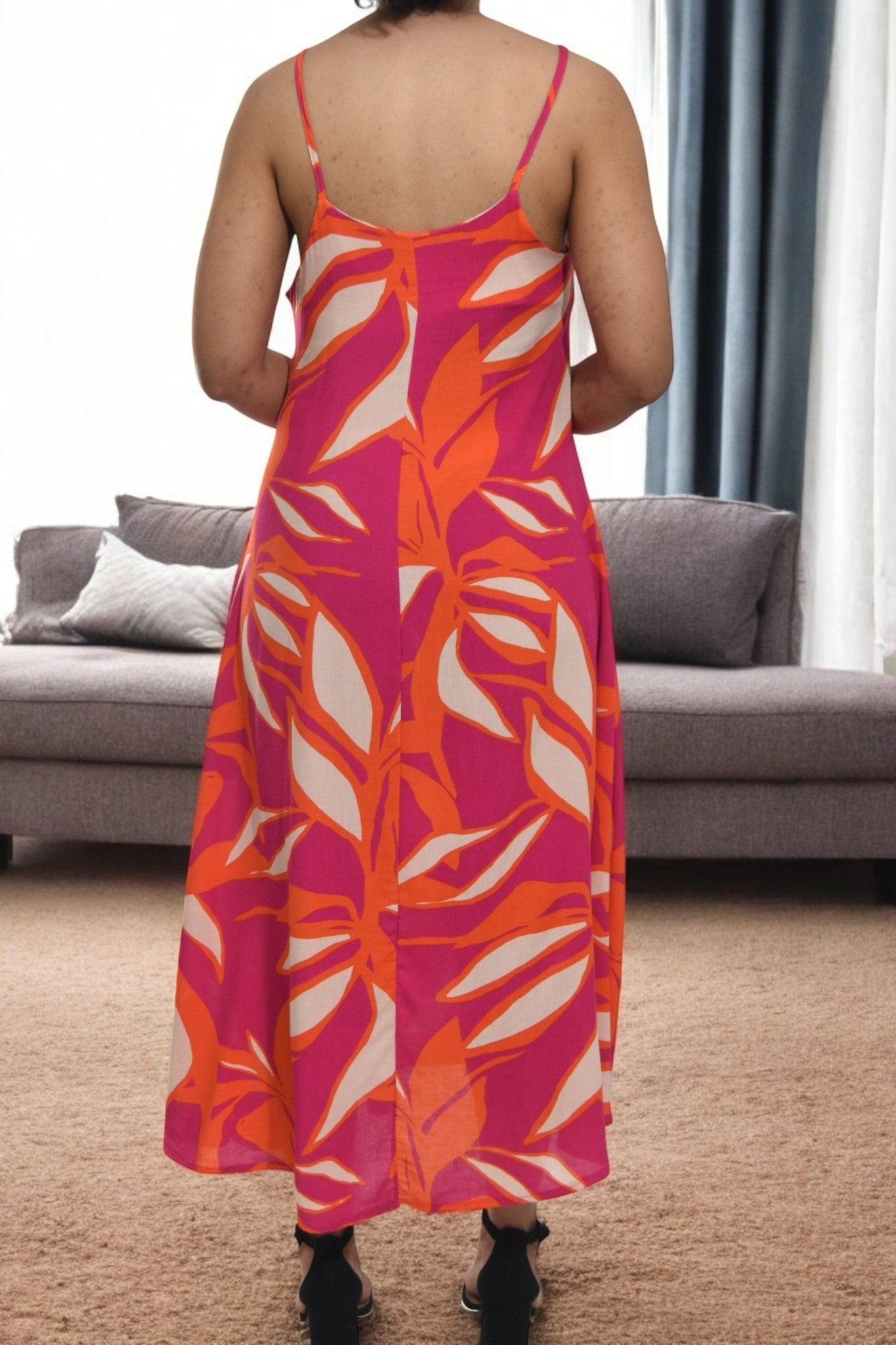 Ladies Midi Pocket Dress -Cerise Floral