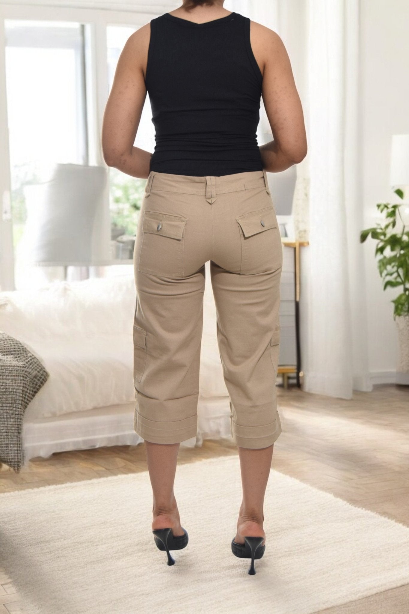 Ladies Beige Stone 3/4 Jean With Side Pockets