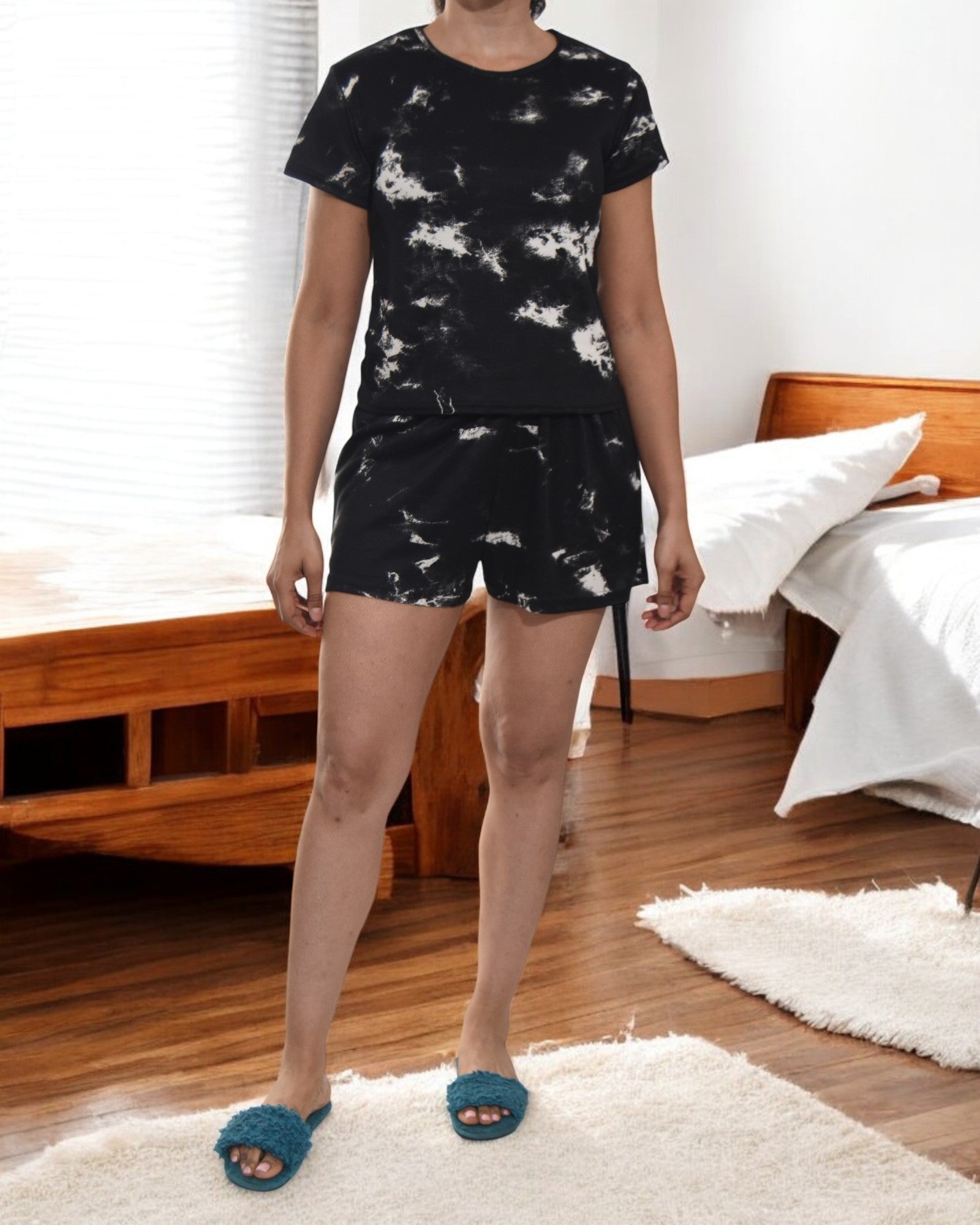 Ladies Black Tie Dye Pj Set
