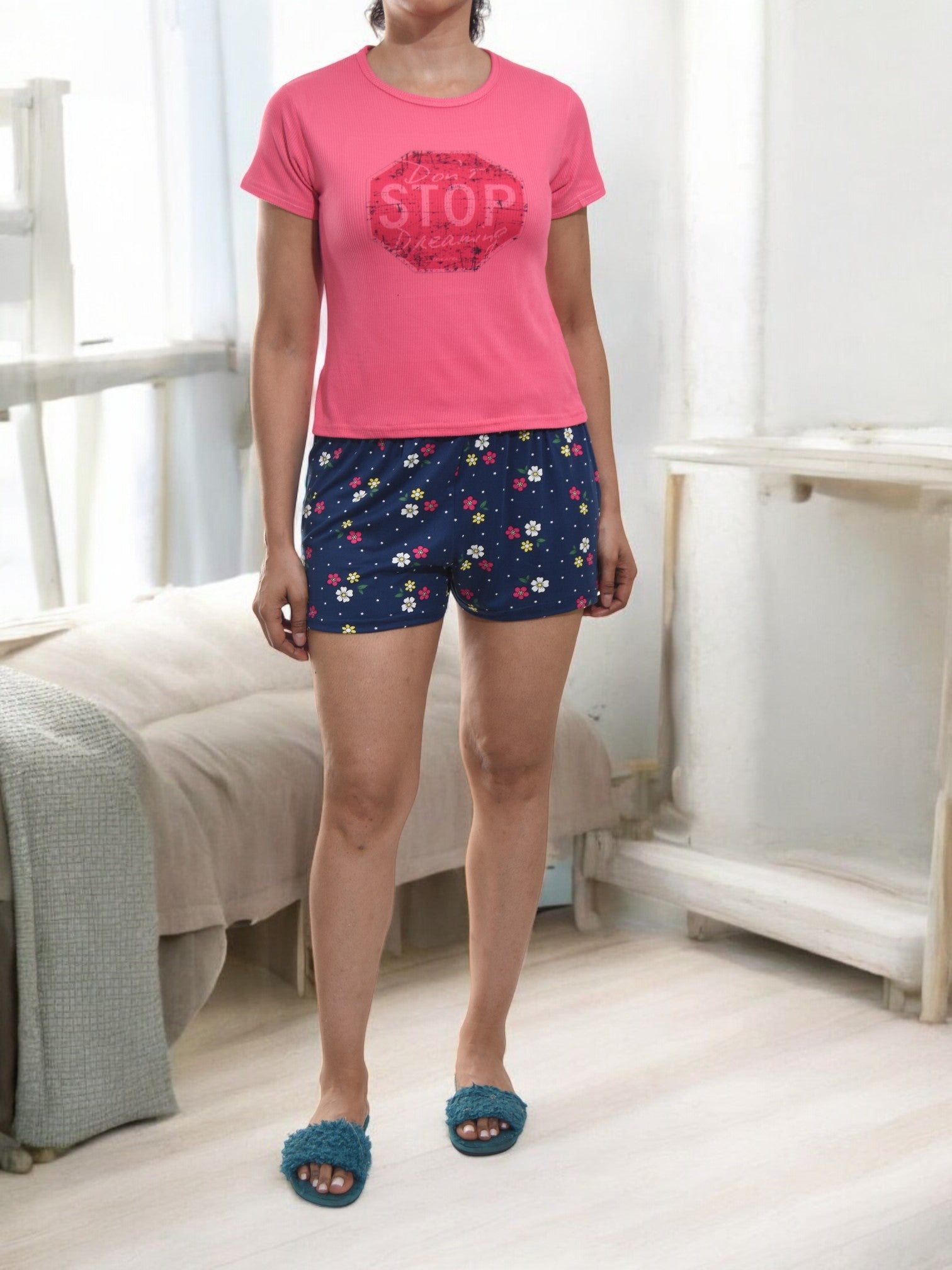 Ladies Pink Printed Pj Set-Don't Stop Dreaming