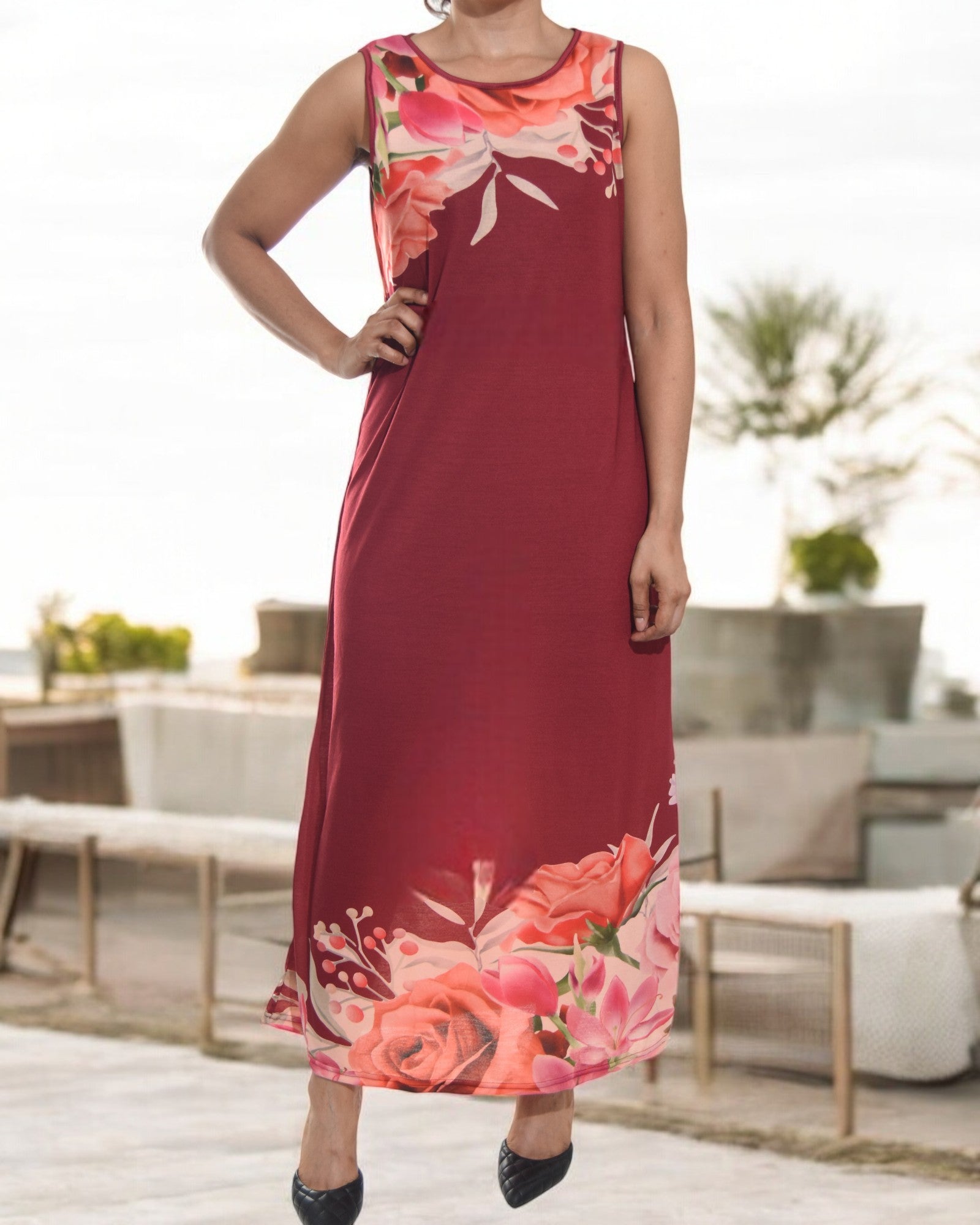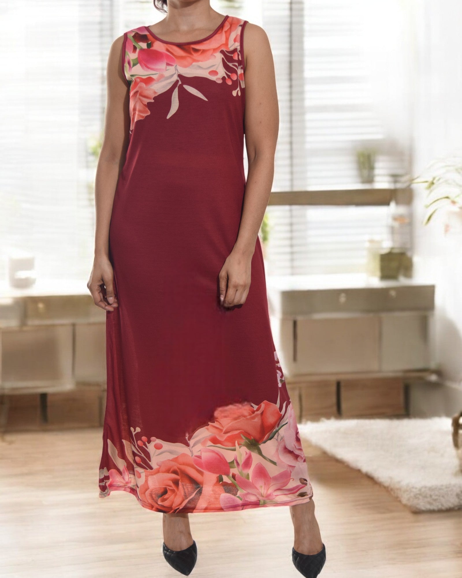 Ladies Maroon Flower Bodycon Dress