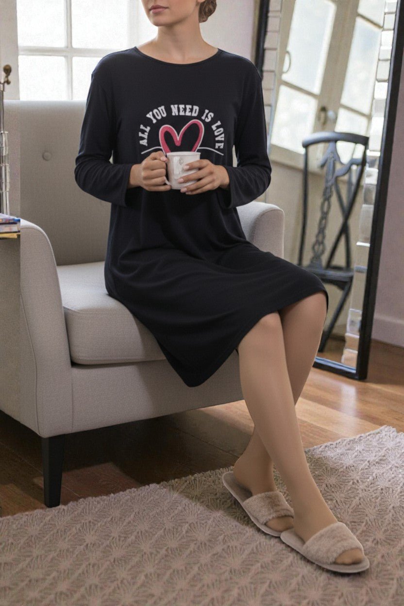 Ladies Black Sleep Shirt -All You Need Is Love