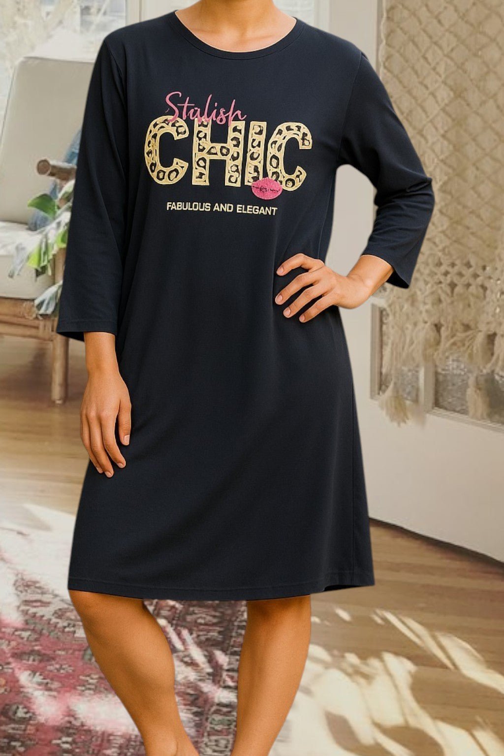 Ladies Black Sleep Shirt -Style Chic