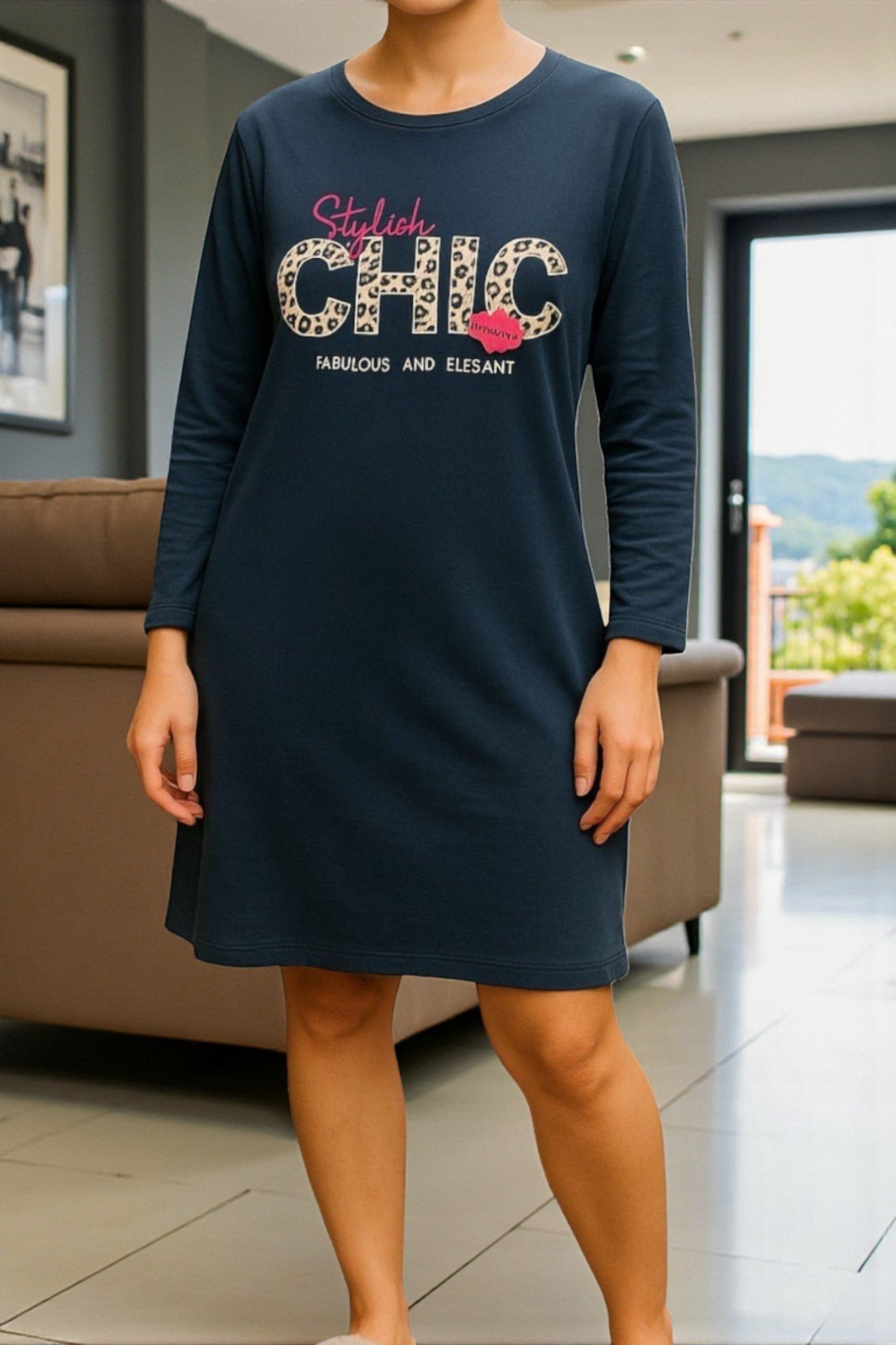 Ladies Dark Blue Sleep Shirt -Style Chic