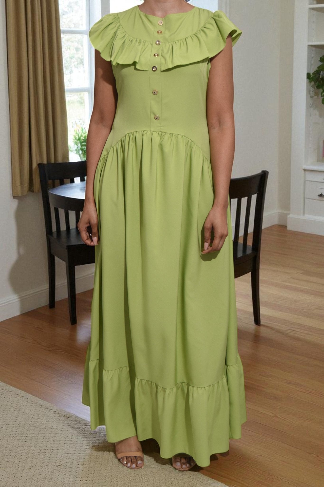 Ladies Lime Ruffled Button Tier Dress