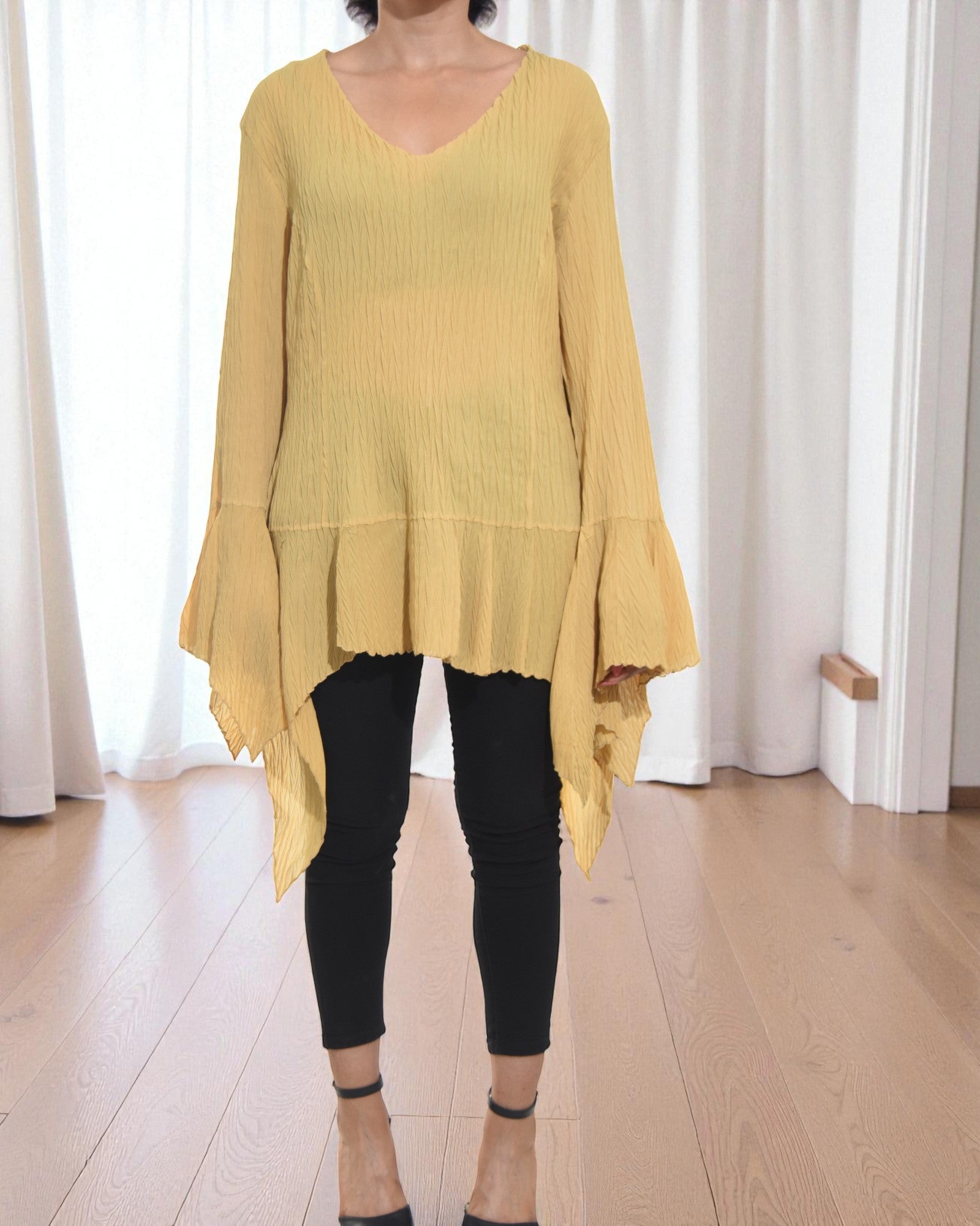 Ladies Mustard Ruffle Sleeve Top