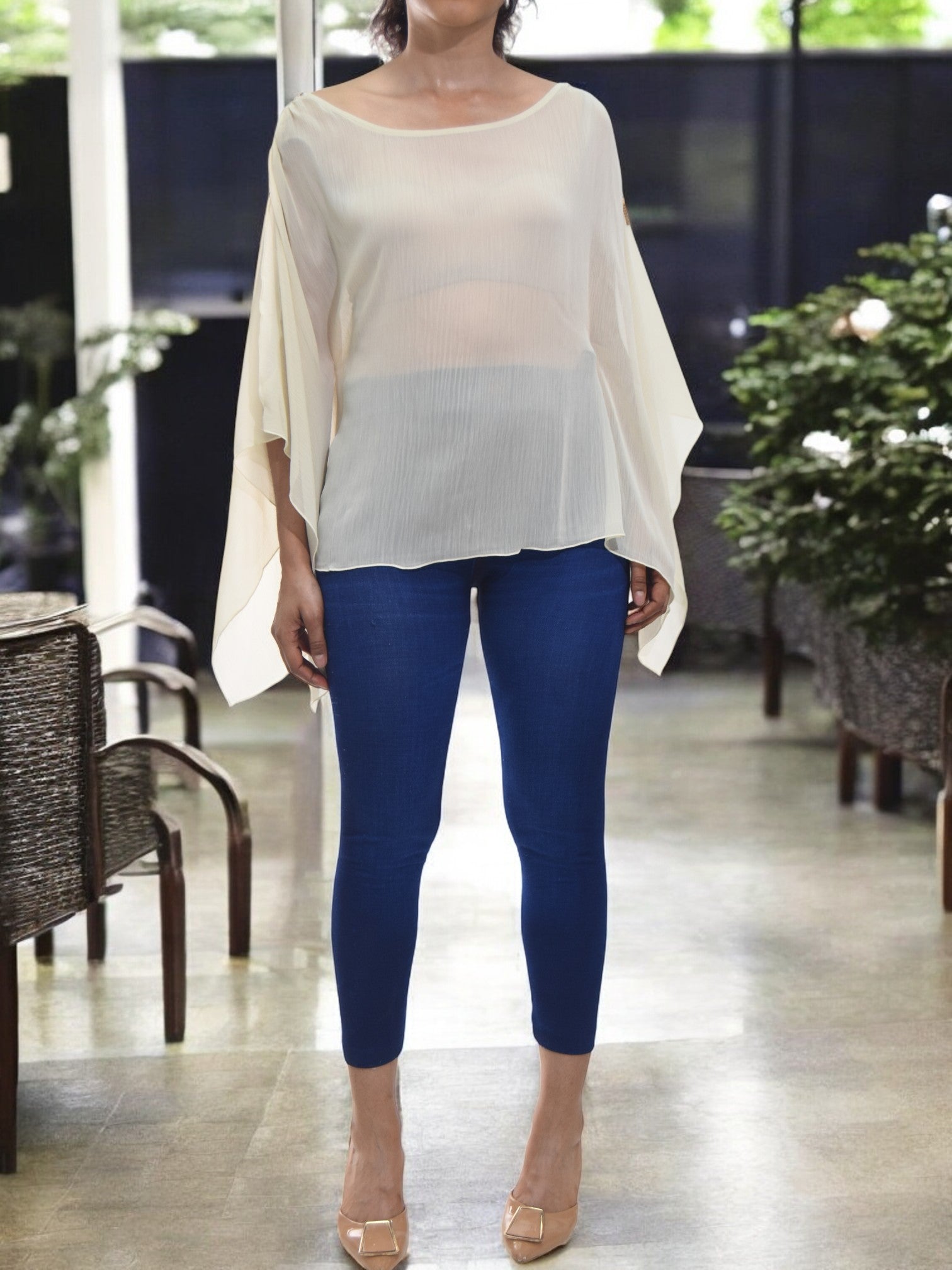Ladies Cream Chiffon Blouse