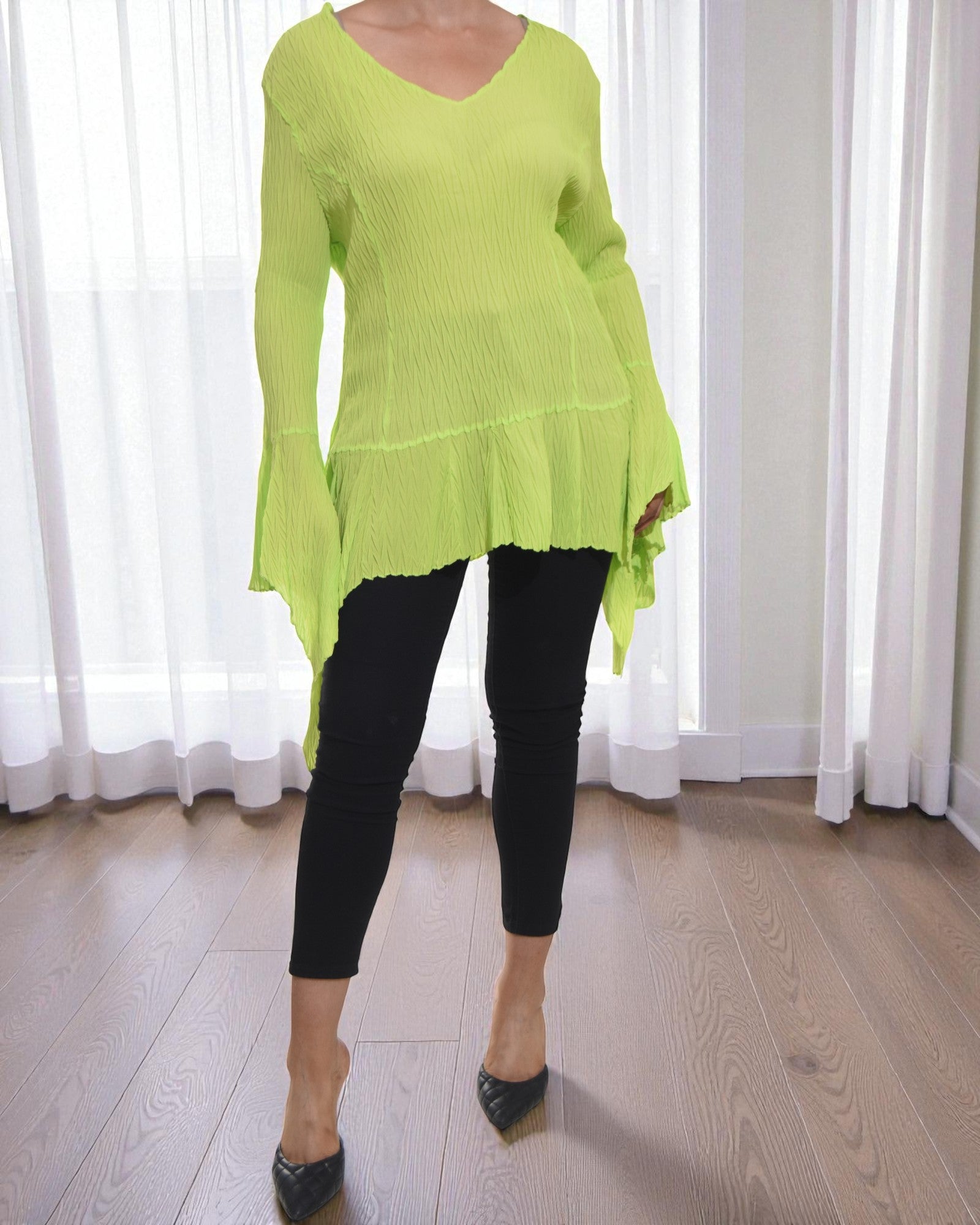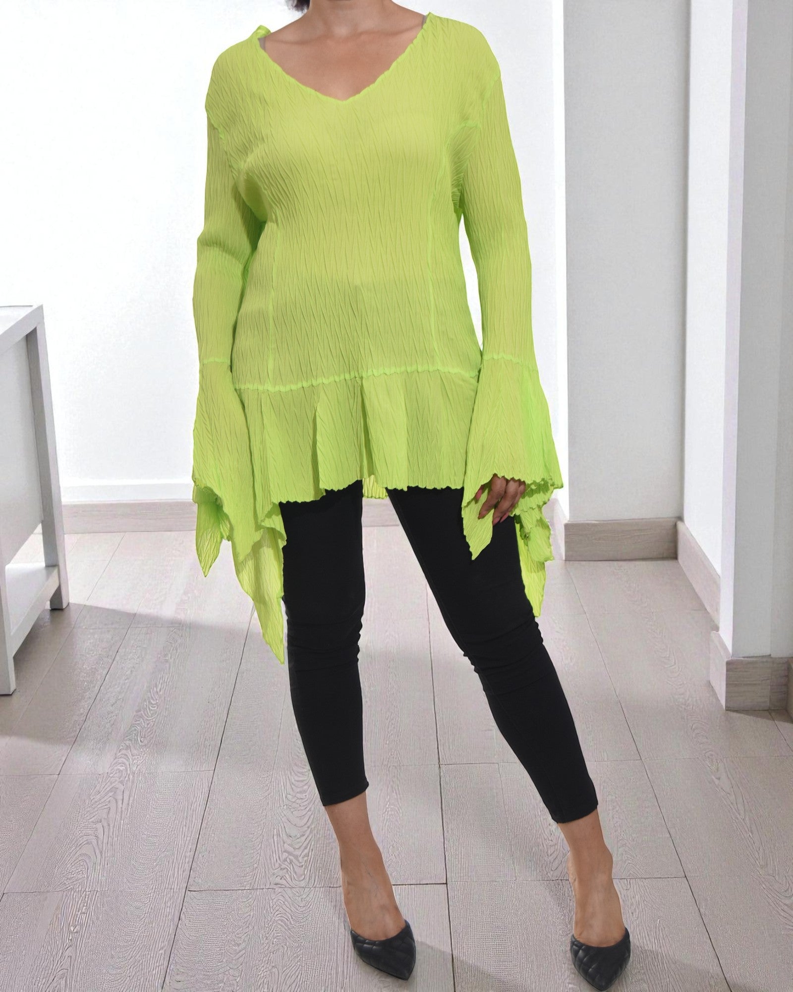 Ladies Lime Ruffle Sleeve Top