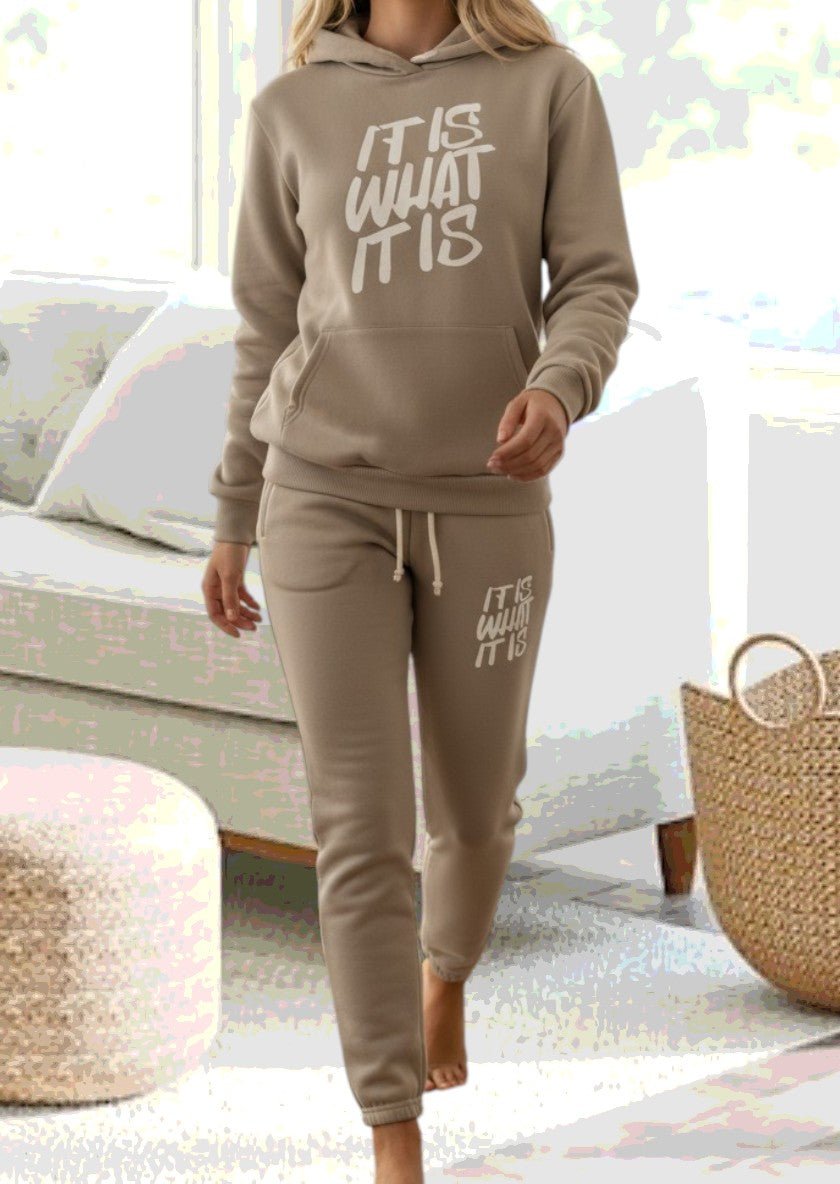 Ladies Olive Printed Fleece Tracksuit-It Is What It Is