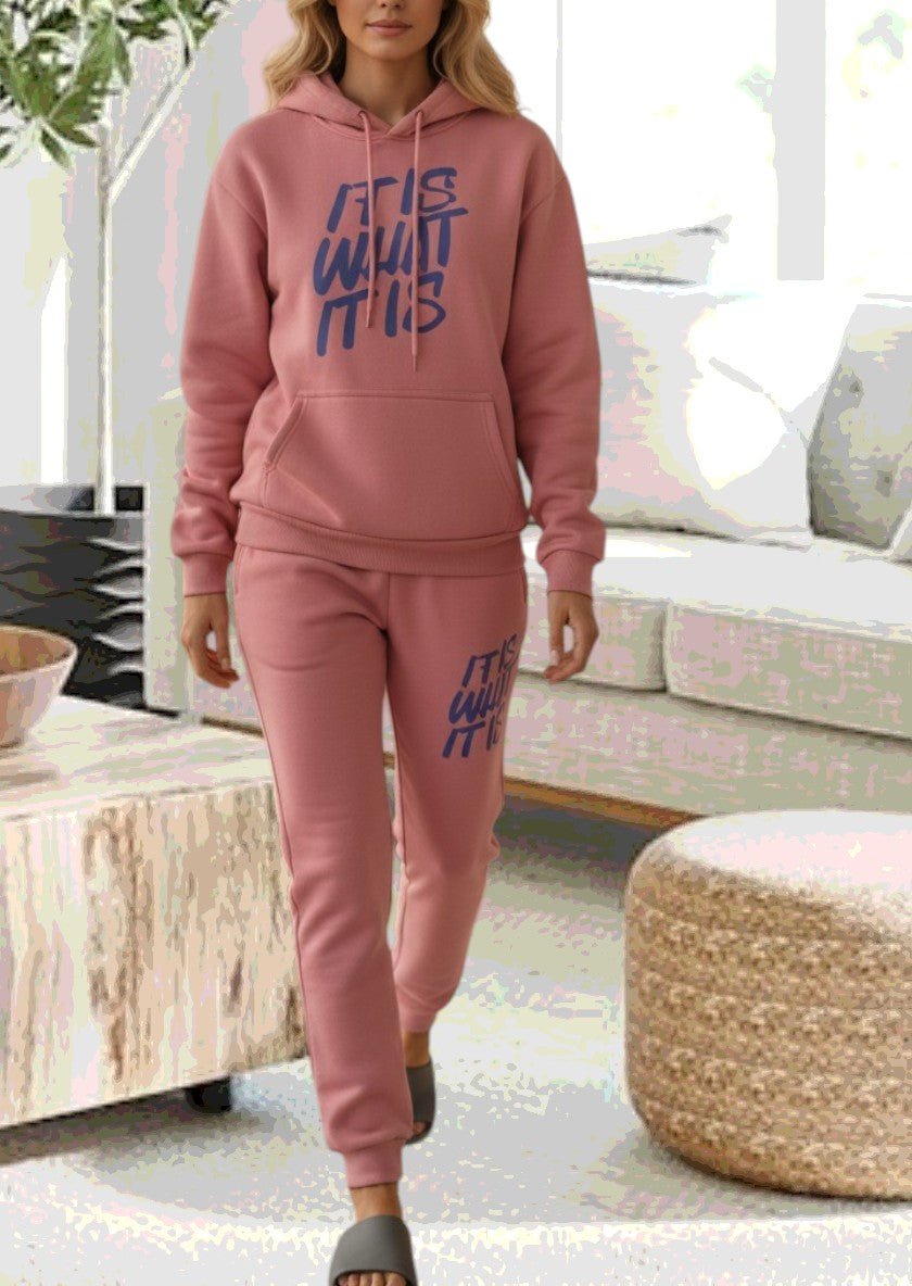 Ladies Pink Printed Fleece Tracksuit-It Is What It Is