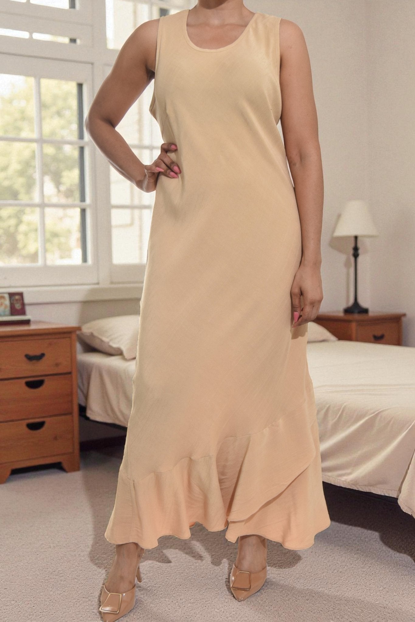 Ladies Beige Two Piece Dress Set