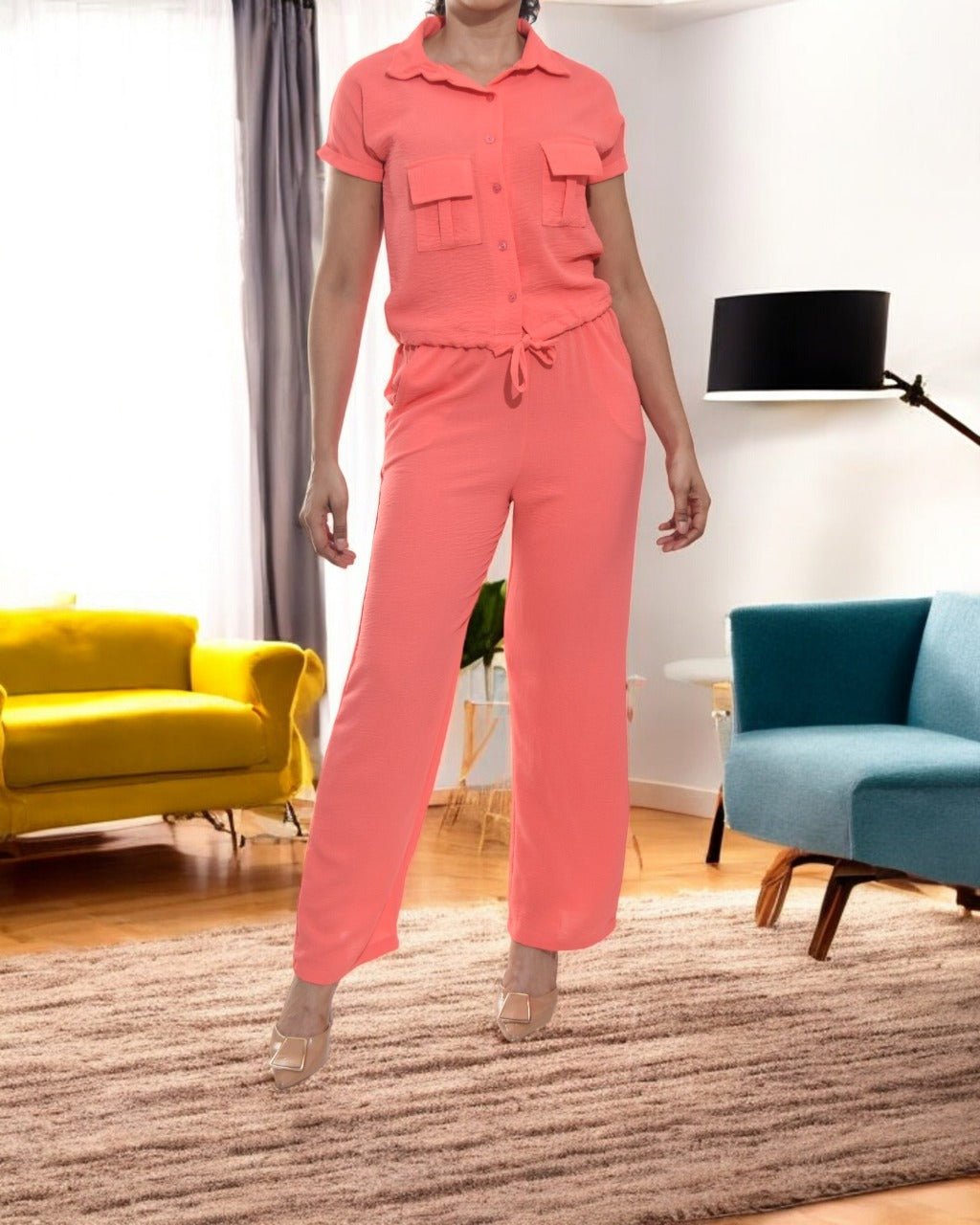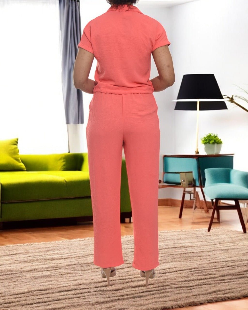Ladies Pocket Crop Two Piece -Coral