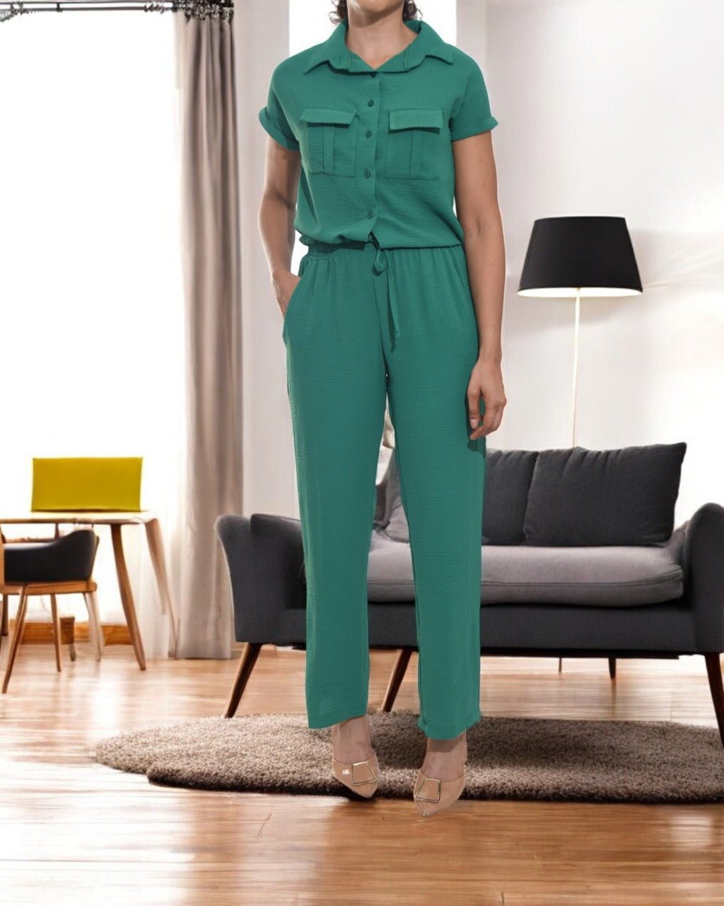 Ladies Pocket Crop Two Piece -Green