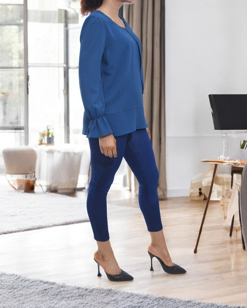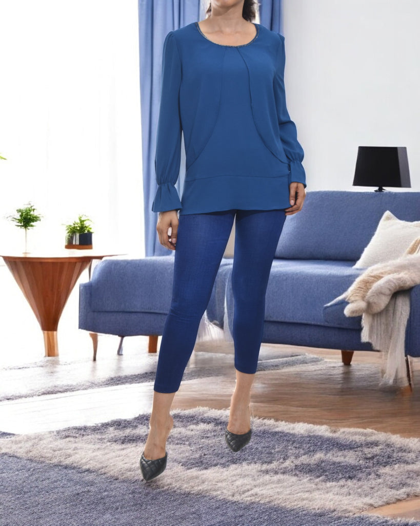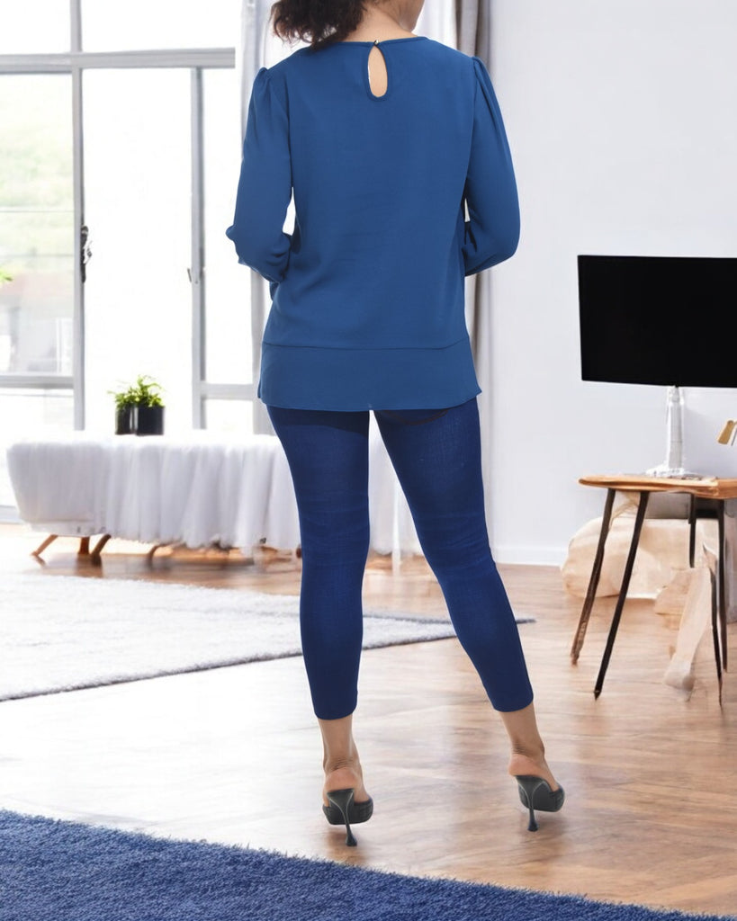 Ladies Long Sleeve Steel Blue Button Back Blouse