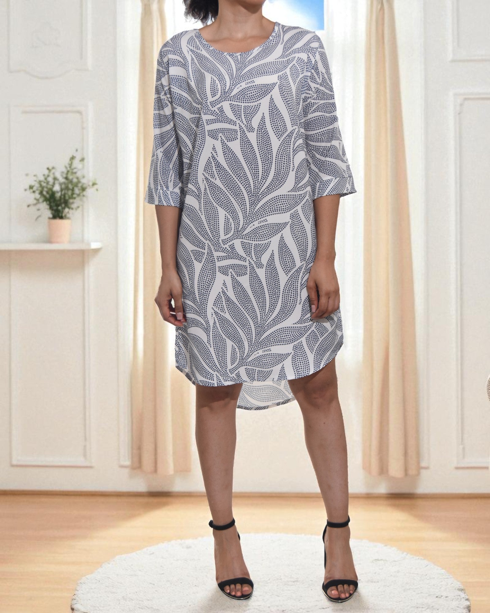 Ladies Floral Navy Tunic 3/4 Sleeve Dress