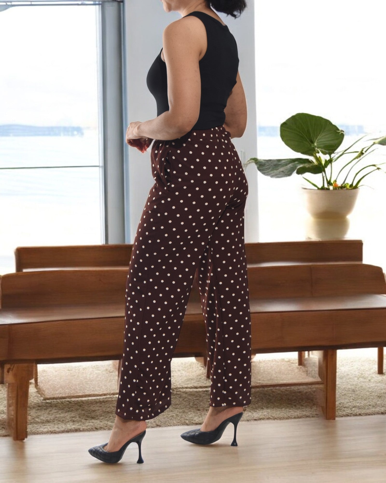 Ladies Pocket Pants- Brown Polka Dot