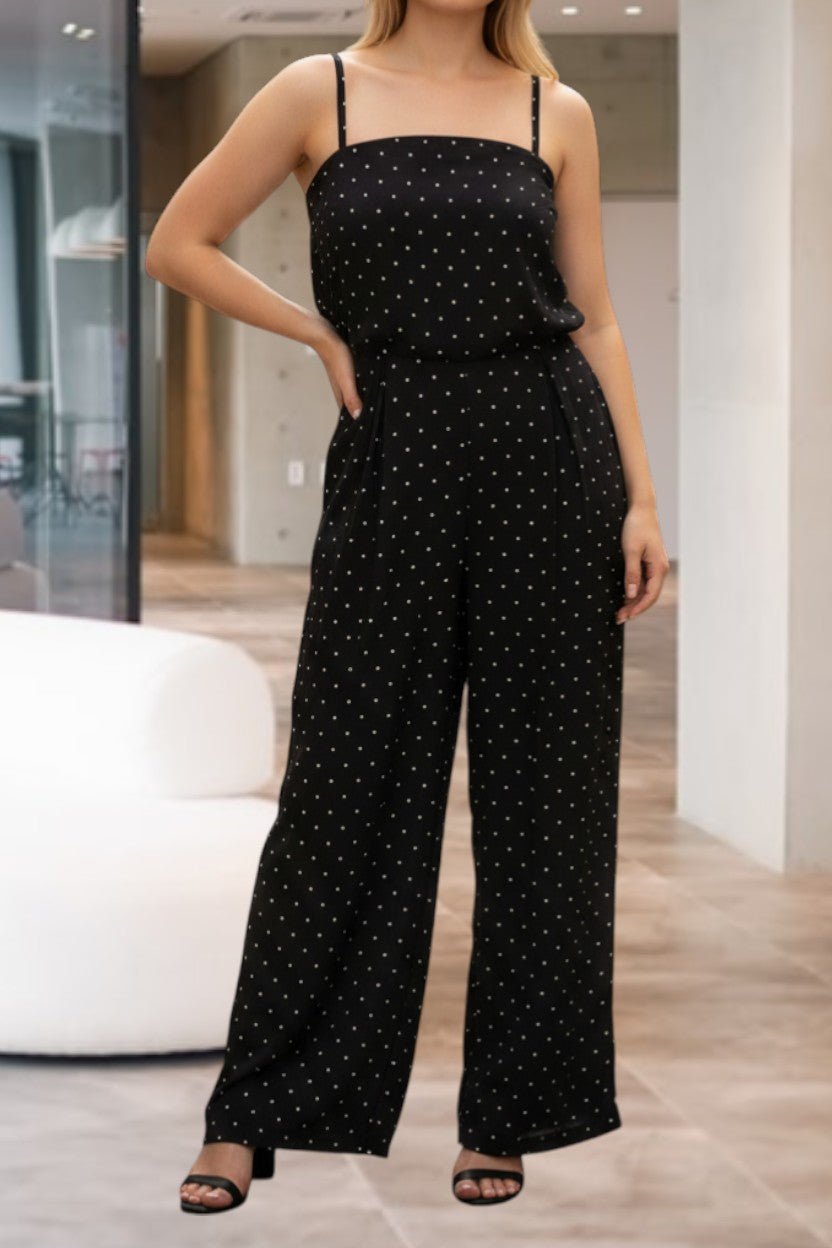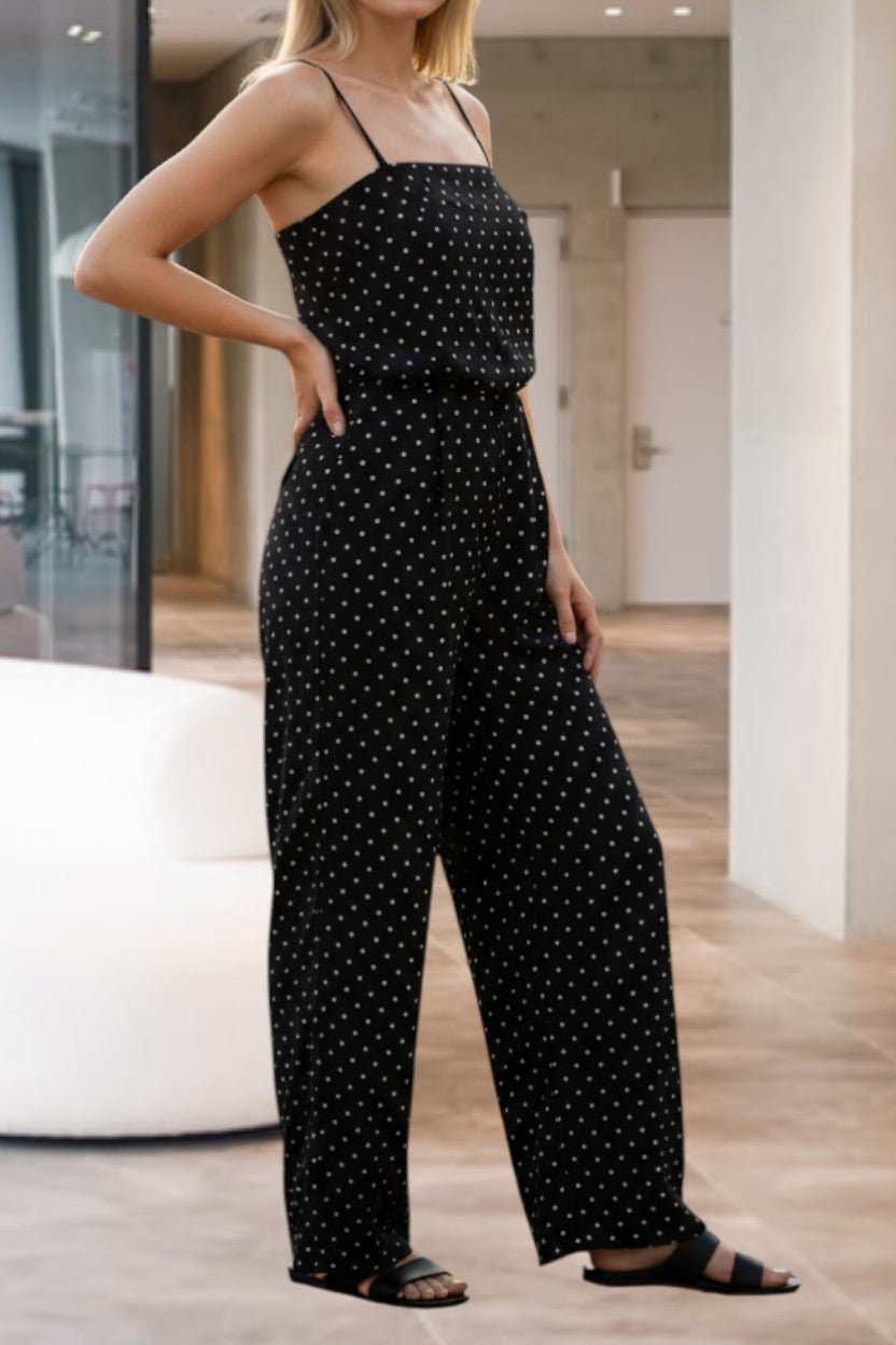Ladies Polka Dot Strappy Pleated Jumpsuit