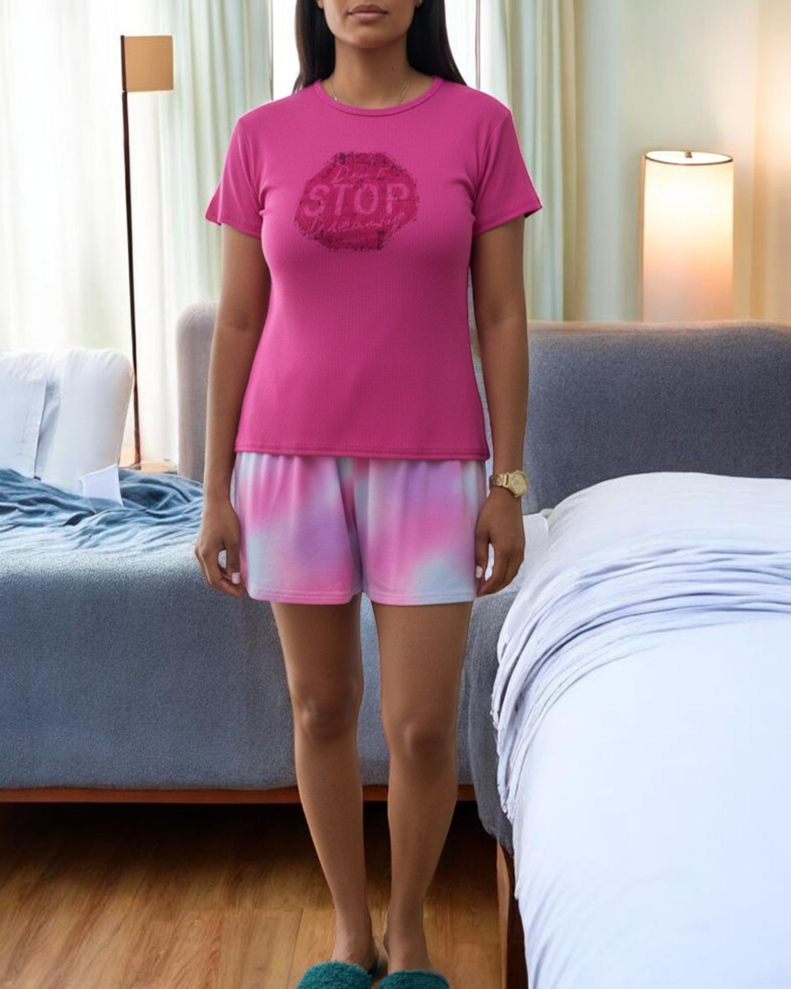 Ladies Multi Color Rib Knit Pj Set-Multi Color